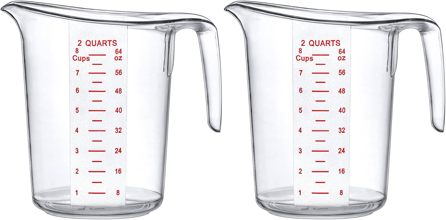 - [MULTIPLE SIZES] The package includes 2 measuring pitchers of the same capacity: 8 cups (64 oz, 2000 ml).