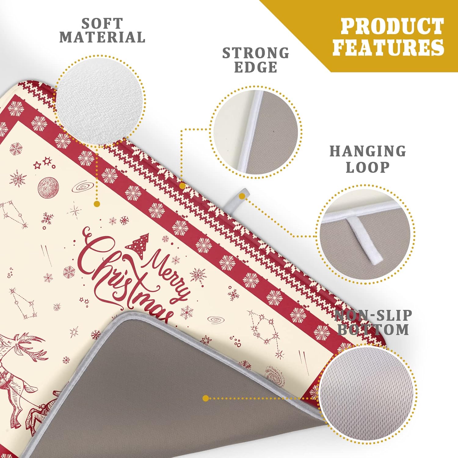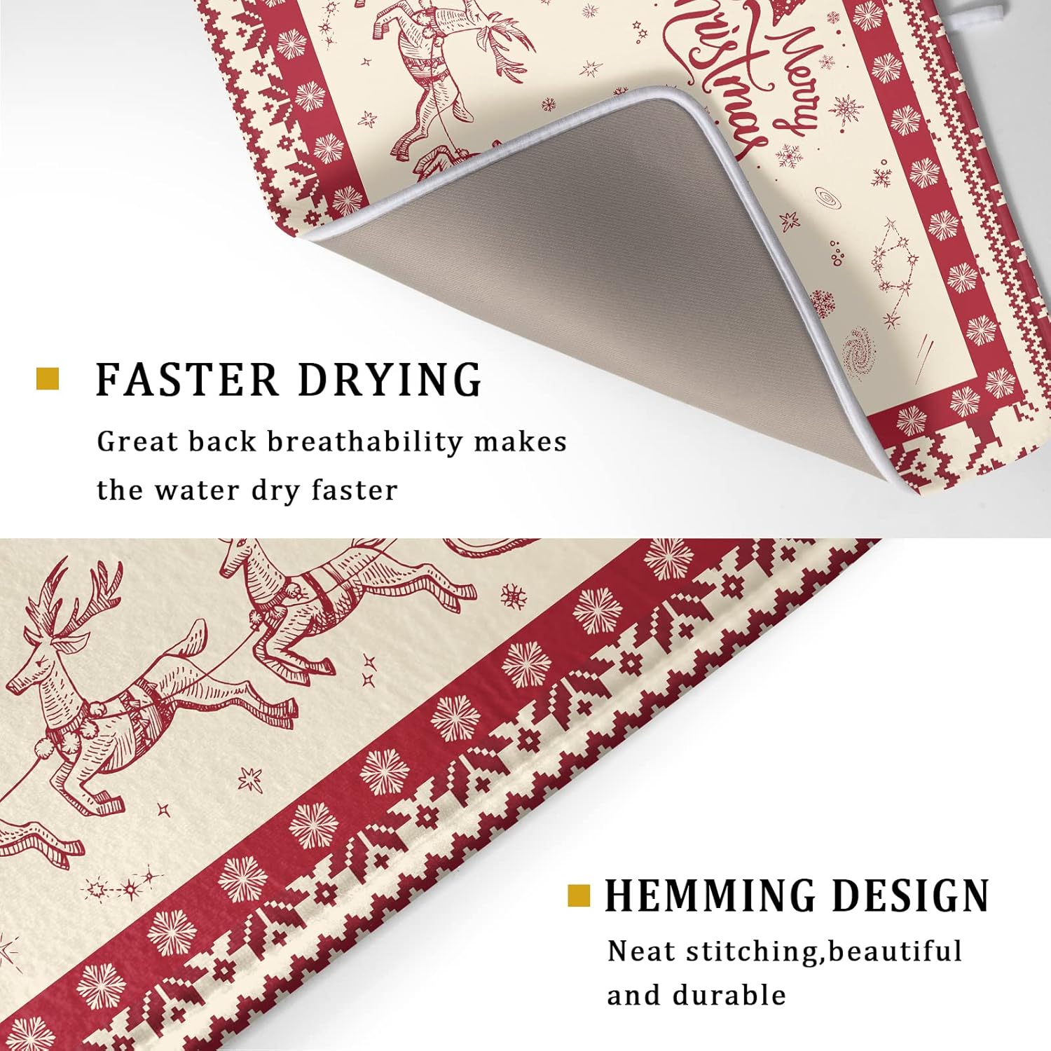 - Easy Storage: The dish drying mat with hanging loop, can be hung on the kitchen wall. This lightweight Christmas Reindeer kitchen dish drying mat, Soft and foldable, Microfiber is naturally, durable, and cleans up easily, and is effortless to clean. frees up space for your kitchen when in use, simply fold up and toss in a drawer or tuck it elsewhere when not in use.