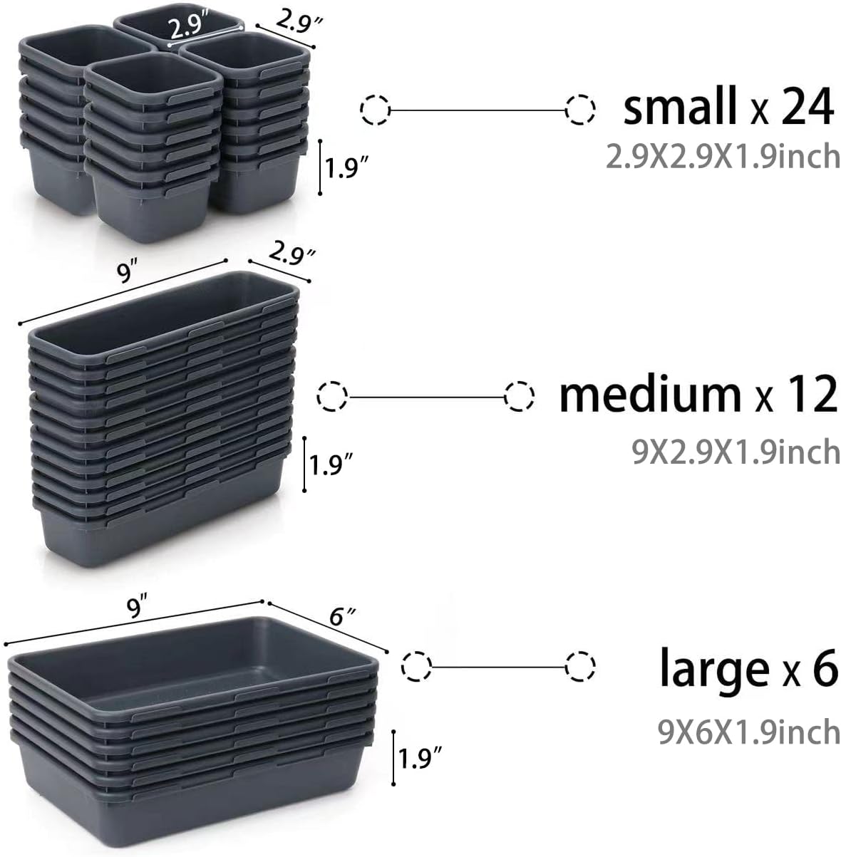 - 【42 trays in 3 sizes】 Package contains 24pcs Small:(2.9×2.9×1.9 inch) - 7.5×7.5×4.8 cm,12pcs Medium:(9×2.9×1.9 inch)- 23.5×7.5×4.8cm,6pcs Large:(9×6×1.9 inch)-23.5×15.5×4.8cm. Altogether they cover an area of 33inches*33inches, plenty for the comprehensive of tool arsenals