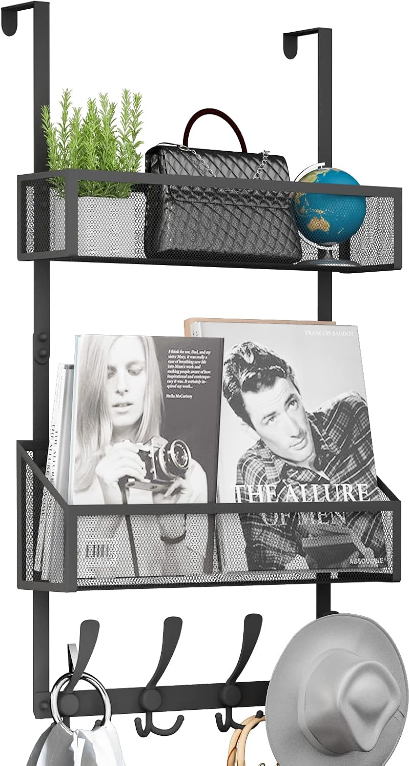 Over The Door Hooks Organizer, Coat Rack Over The Door Storage Hanger Towel Rack, Back of Door Storage Organizer for Bathroom,Bedroom,Kitchen,Office (Black 3-Tier)