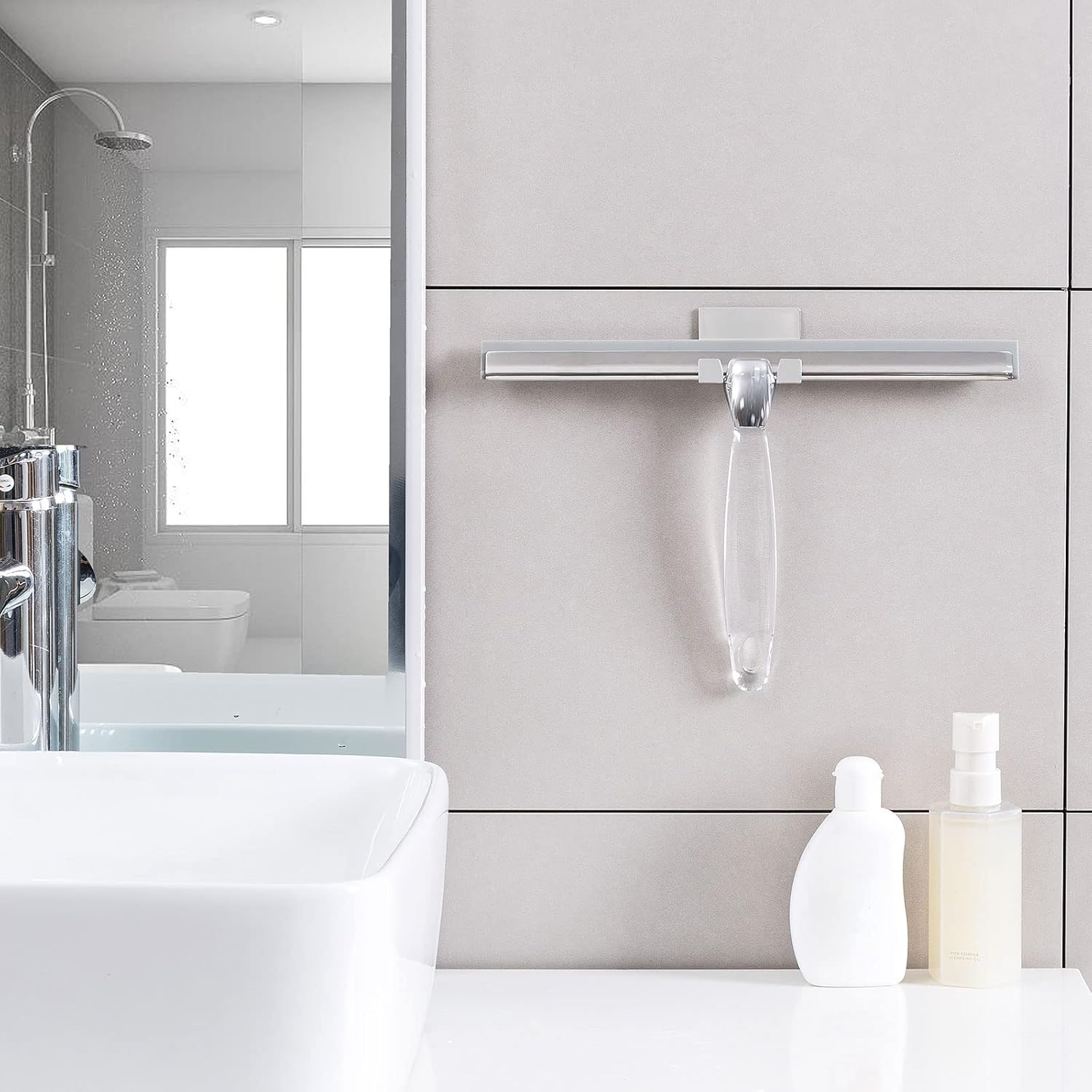 - Adhesive Hook Included: Our small squeegee comes with a powerful adhesive hook that can be attached to any flat and smooth surfaces. It is very convenient for daily use and storage