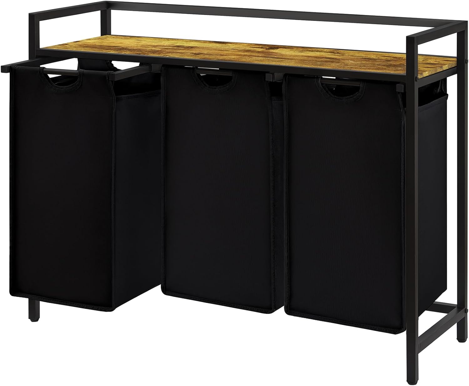 Lifewit Laundry Hamper 3 Section, 120L Pull out Laundry Clothes Basket Organizer with Large Top Shelf and 3 Removable Bags and Handles, Laundry Sorter for Laundry Room Bedroom Bathroom Dorm, Black
