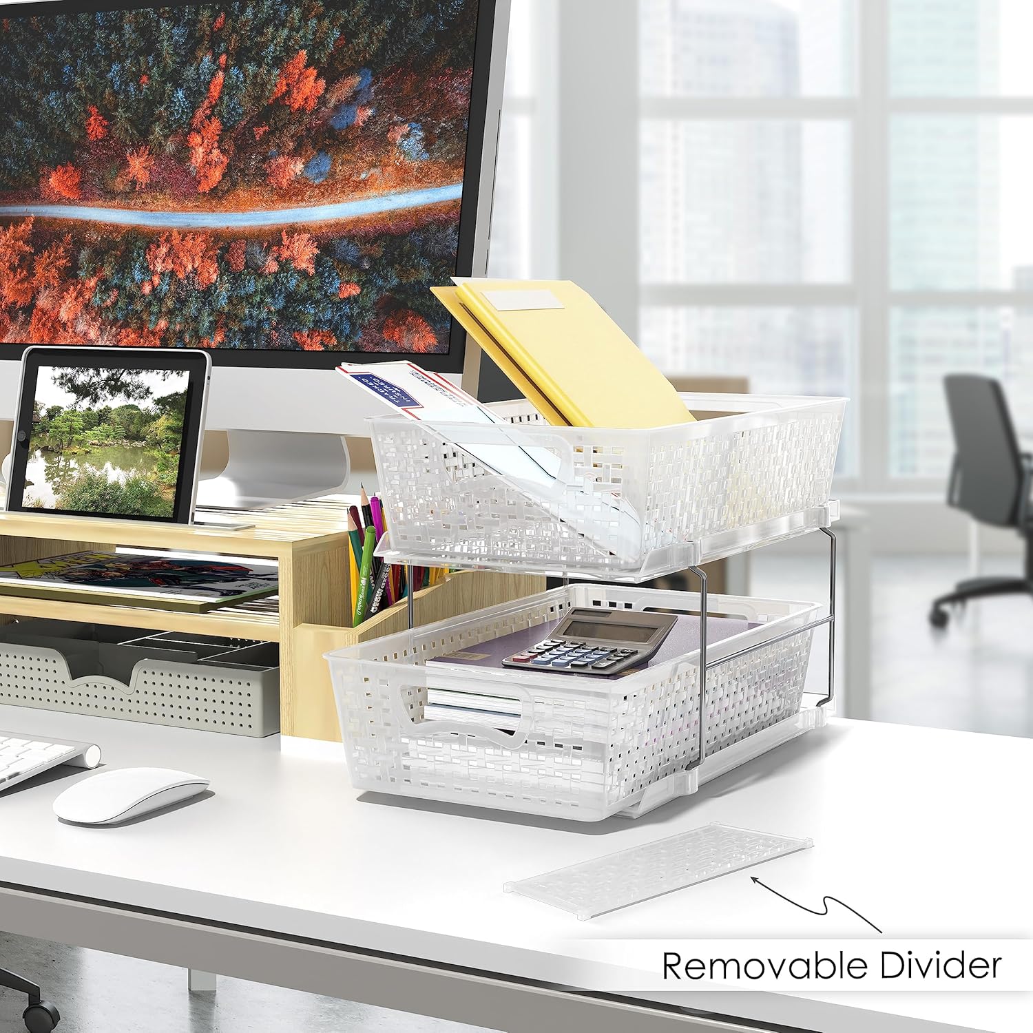 Simple Houseware 2 Tier Bathroom Organizer Tray Pull-Out Sliding Drawer/Under-Sink Storage, Clear
