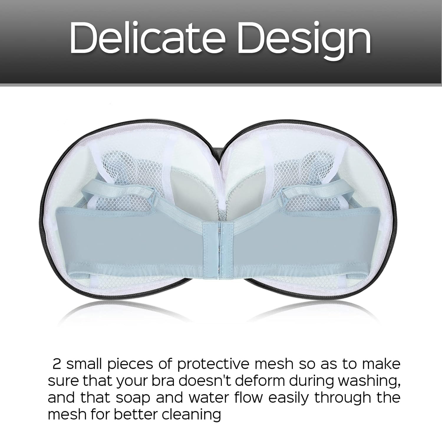 - Mesh design: each delicate laundry bag has 2 small pieces of protective mesh so as to make sure that your bra doesn't deform during washing, and that soap and water flow easily through the mesh for better cleaning