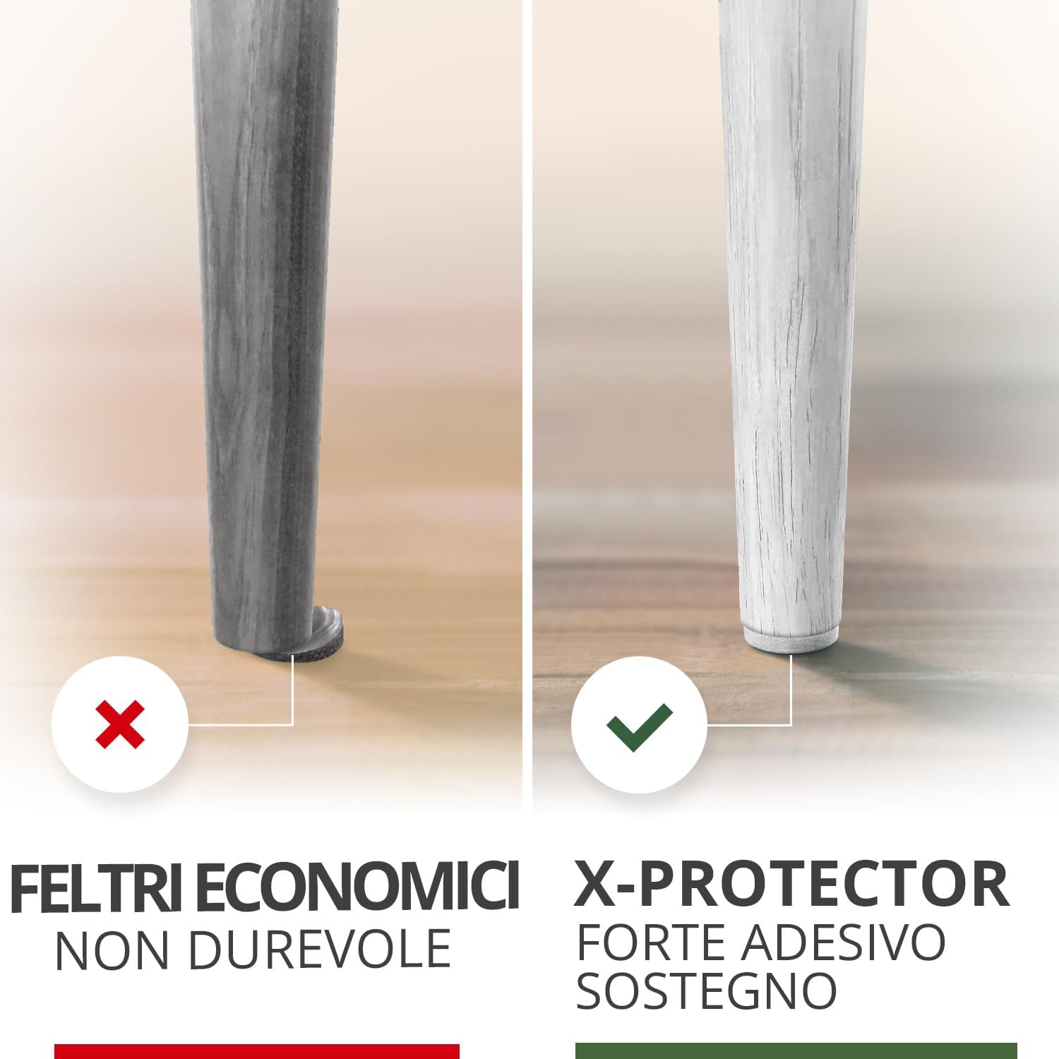 - ✌ X-PROTECTOR SUITABLE FOR ANY HOME FURNITURE – our felts wood floor protectors for furniture are perfect for any chair legs and furniture feet. STICK IT EASILY TO YOUR HOME FURNITURE!