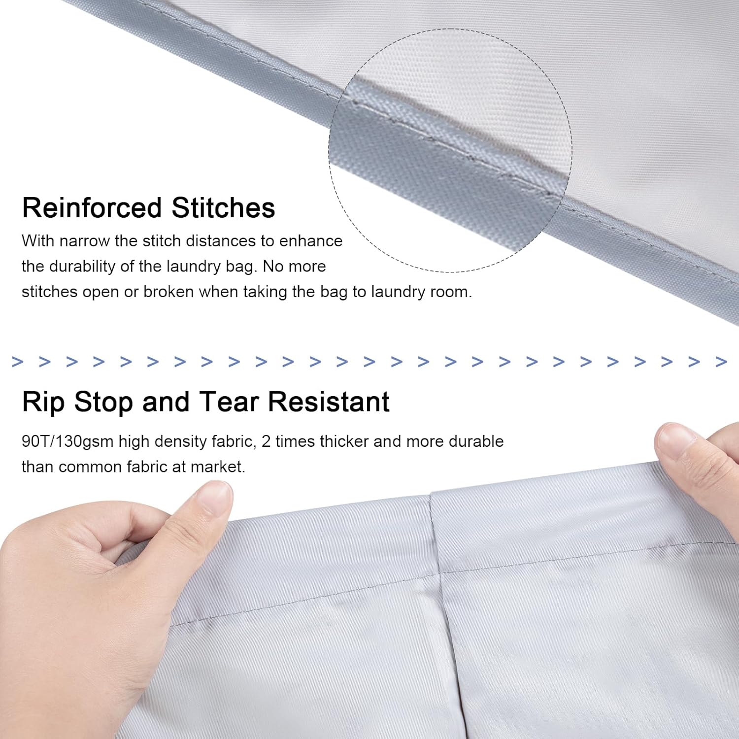 - By using 2 times strengthened fabric and extra durable stitches, the bag is extremely more durable and long lasting than normal laundry bags. You can get immediate replace and refund for fabric tear or stitches broken within 3 years.