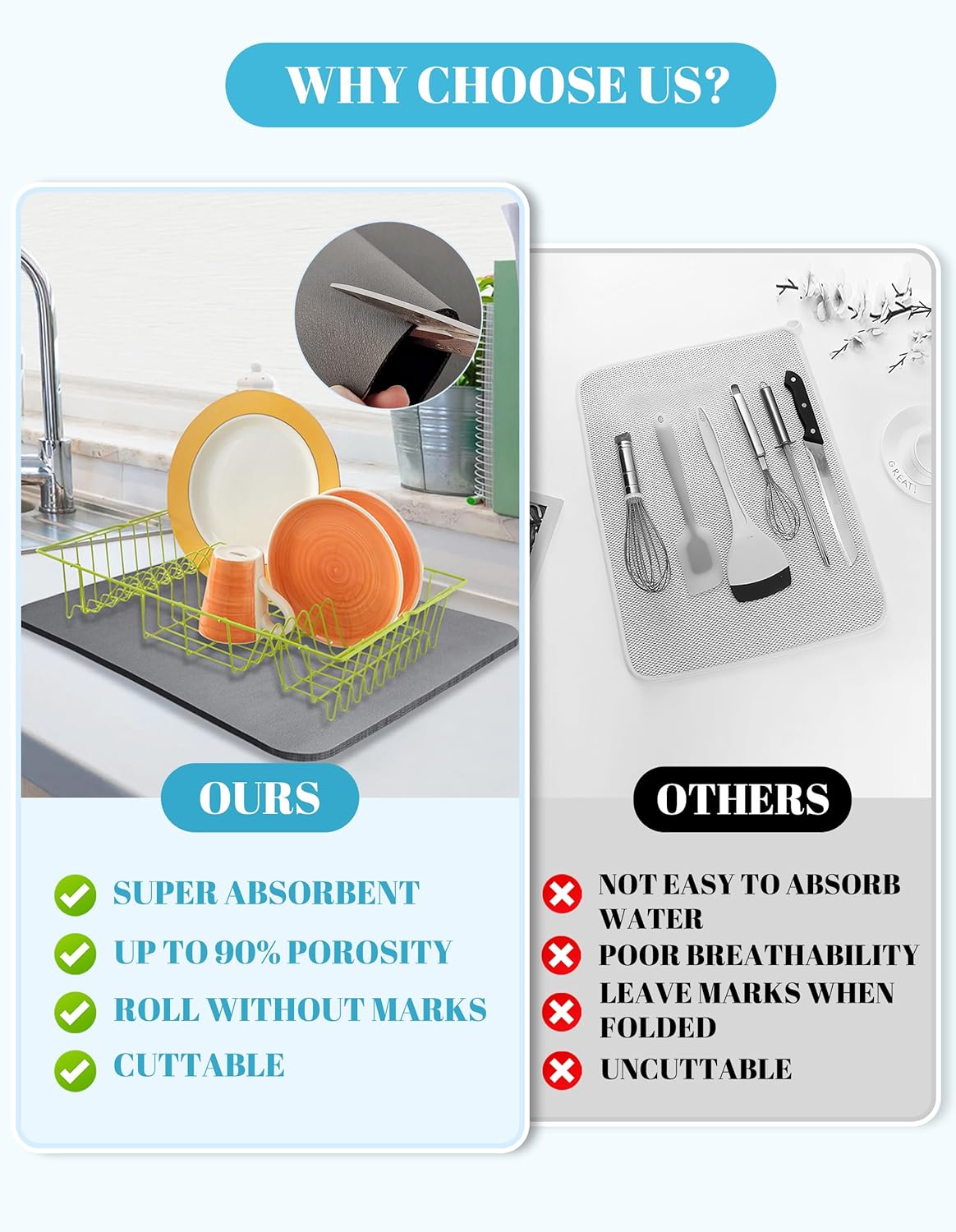 - DISH DRYING MAT: The drying mat is soft and absorbent, Always keep countertops clean and tidy. A practical kitchen mat accessory is definitely worth choosing.