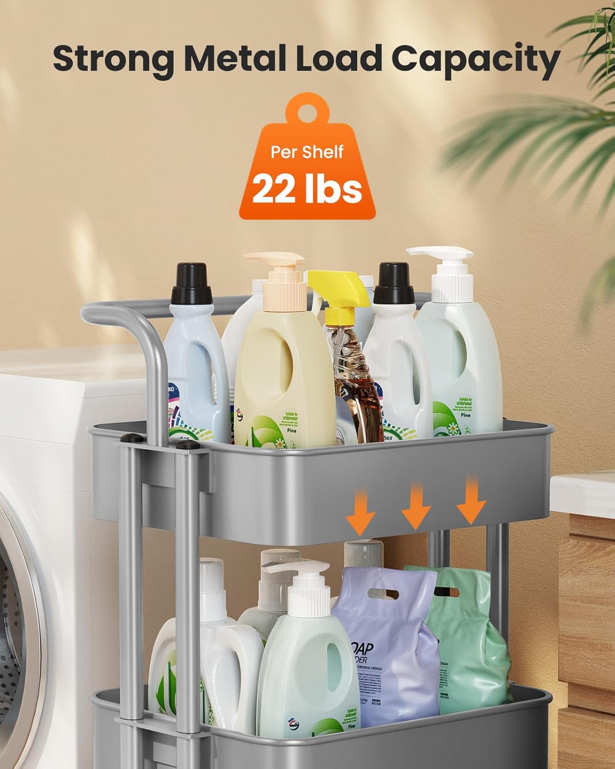 - ORGANIZE YOUR SPACE: Reduce clutter with this 3 tier rolling cart. The rolling cart features plenty of storage space to better organize your home. Turn a messy house into a tidy house with this convenient rolling cart.