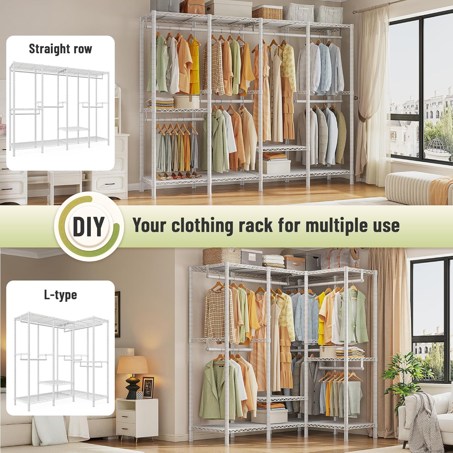 Raybee Heavy Duty Clothes Rack for Hanging Clothes,Clothing Rack with Shelves, Adjustable,76" W x 77" H x 18" D,Max Load 1150lbs,White