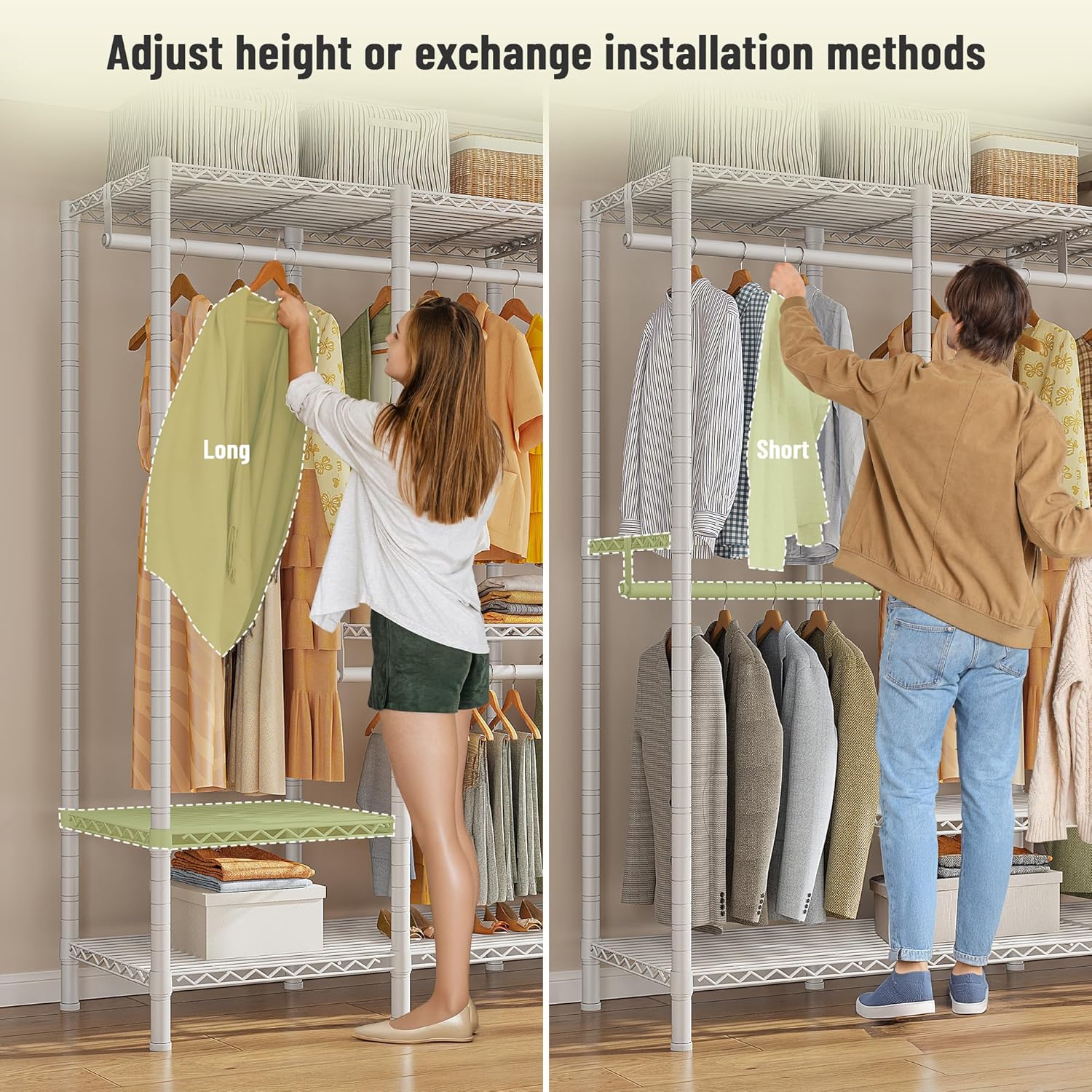 - 【Sturdy Clothing Rack】The heavy duty clothing rack is solid and extremely sturdy, it features stable. Which has managed to organize all your clothing, giving you extra space for additional clothing. Easy access in bedroom, cloakroom, clothing store, laundry room and more.