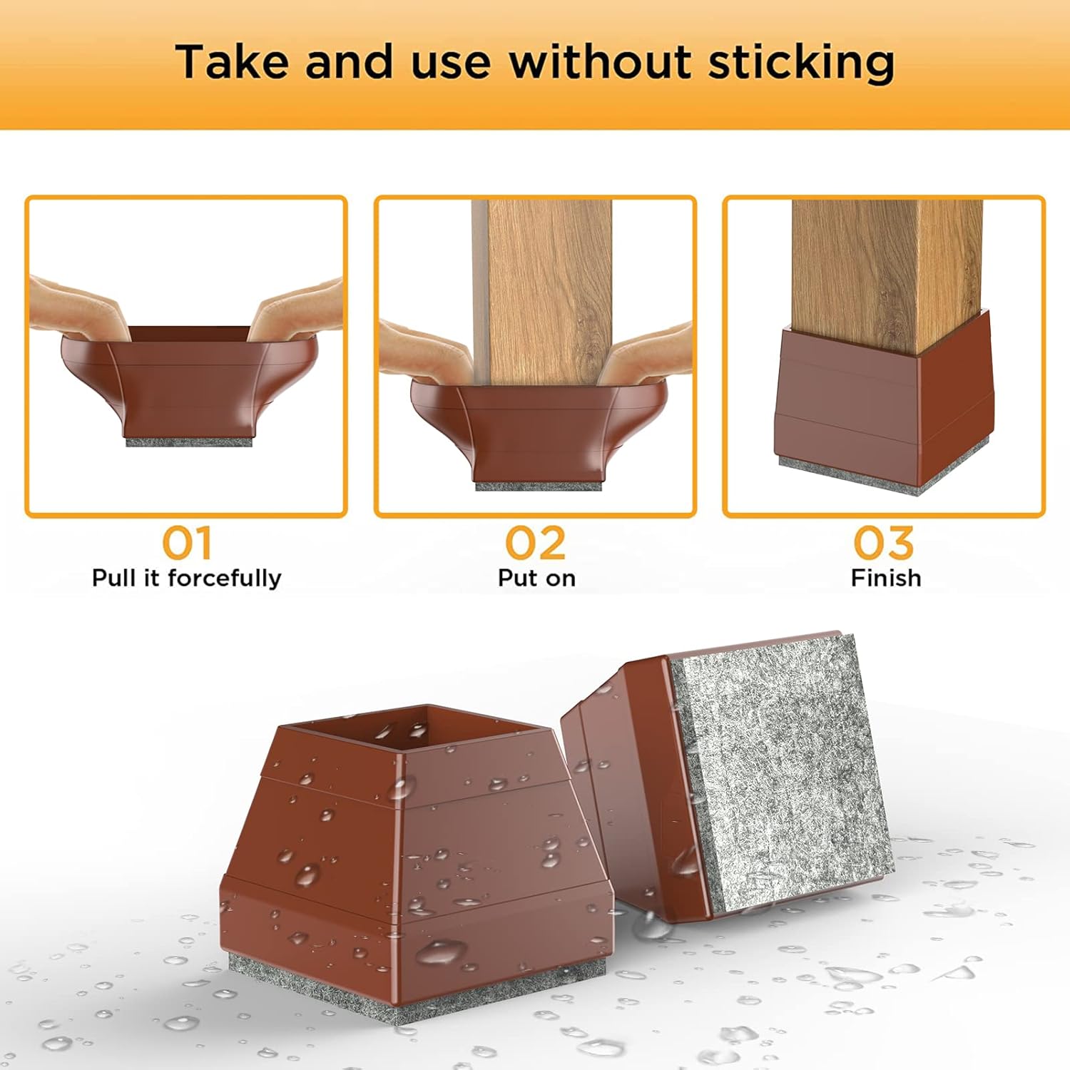 - Easy to install: Chair Leg Protectors can easily stretch to fit over furniture legs. Just slip them over your chair legs, and theyβll fit snuggly to stay in place! No tools needed and no chair foot cleaning needed.If silicone furniture protectors for chair legs is dirty, you can remove it and wash it and use it multiple times.