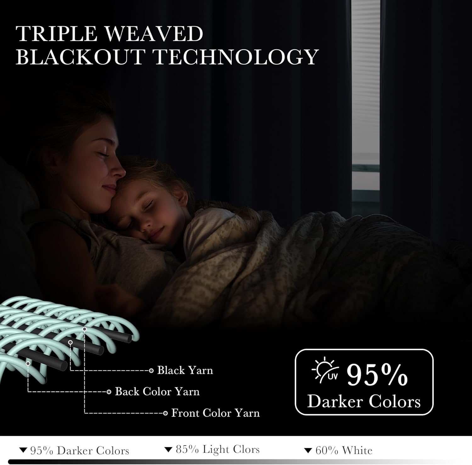 - LIGHT CONTROL - Adopt the triple weave technology, the heavy and soft fabric can prevent harsh sunlight and UV ray from passing through the windows. Dark color works better than the light one