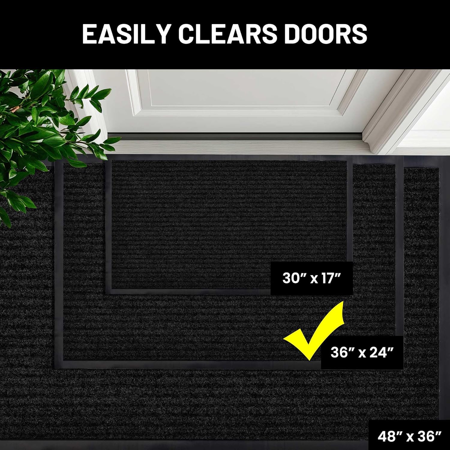 Sierra Concepts 2-Pack Front Door Mat - Large 36 x 24 Welcome Indoor Outdoor Entryway Mats for Shoe Scraper, Ideal for Inside Outside High Traffic Area, Black