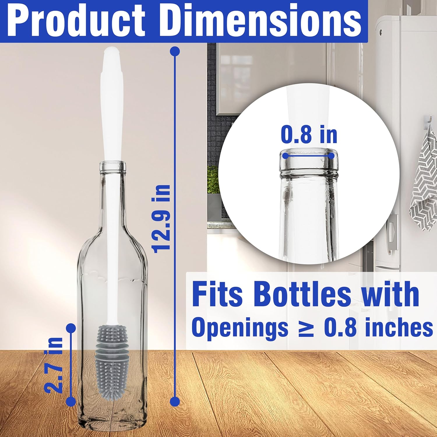 - NARROW HEAD - The bottle cleaner brush head is 1.4" wider and can be squeezed into 1" wide to reach into the hard to reach places inside water bottles. The combination of dots and circles get a good contact to bottle surfaces and clean clearly, free from odour and nasty grime.