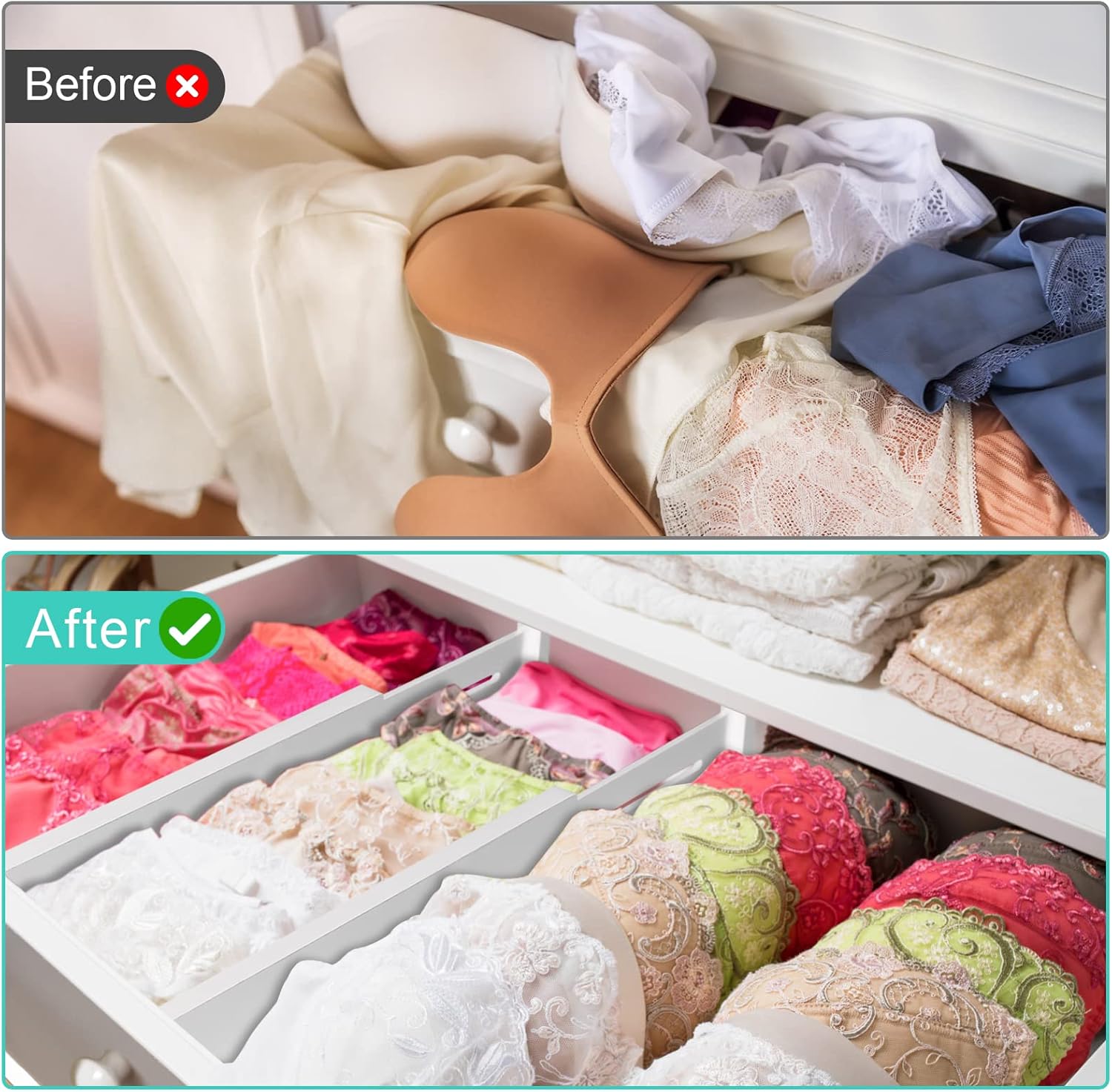 - STRONG SPRING-LOAD MECHANISM: These expandable drawer dividers are a low-cost, effective solution to improve the panorama inside your drawers. The expandable bamboo drawer dividers work by dividing and sectioning your drawer according to your preferences. Each drawer divider features a spring-loaded mechanism that allows you to adjust and install it with ease, making them perfect for small or large drawers