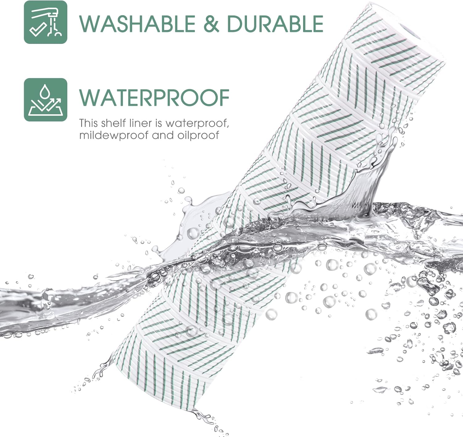 Glotoch Shelf Liners for Kitchen Cabinets Non-Adhesive,12in x 20FT Non Slip Shelf Liner Waterproof Contact Paper for Cabinets and Drawers,Pantry, EVA Wire Shelf Liners,White and Green Herringbone