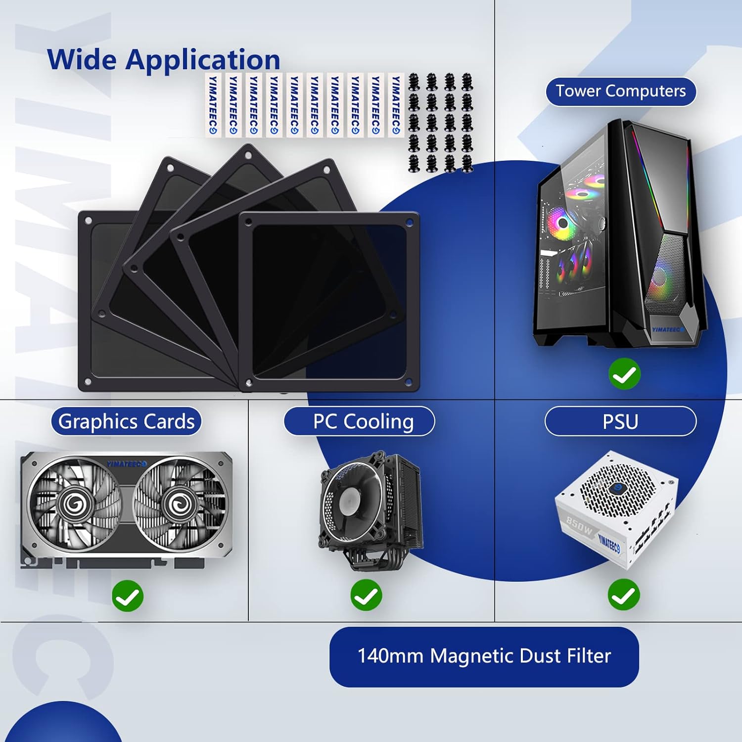 - 【DELIVERY LIST】YIMATEECO Provides: 5 x 140*140mm PC Dust Filter Black (NYLON & PVC) + 10 x 40*10mm Nano Gel-Mat(Acrylic) + 20 x 5*10mm M5 Fans Screws(Q235 STEEL).