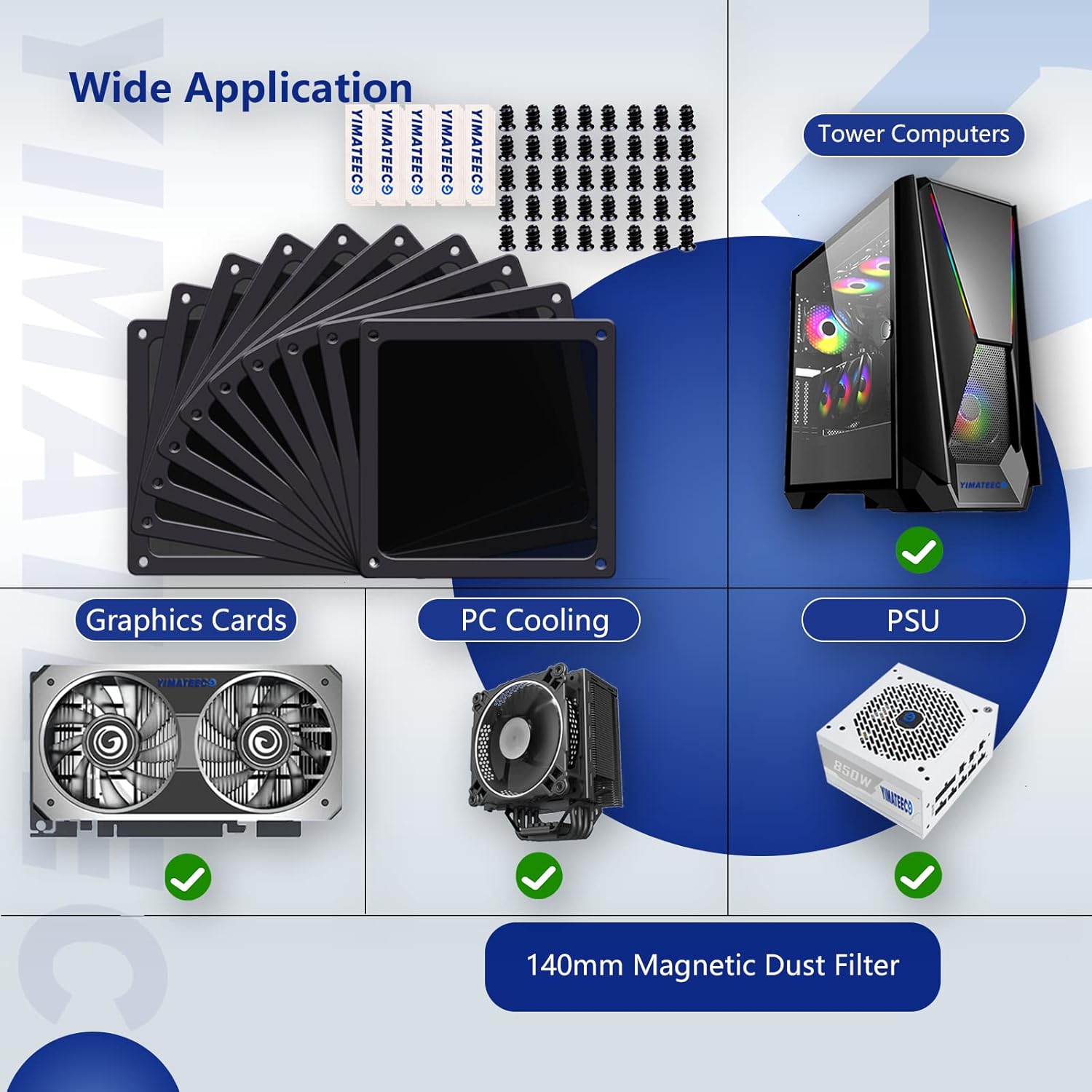 - 【DELIVERY LIST】YIMATEECO Provides: 10 x 140*140mm PC Dust Filter Black (NYLON & PVC) + 20 x 40*10mm Nano Gel-Mat(Acrylic) + 40 x 5*10mm M5 Fans Screws(Q235 STEEL).