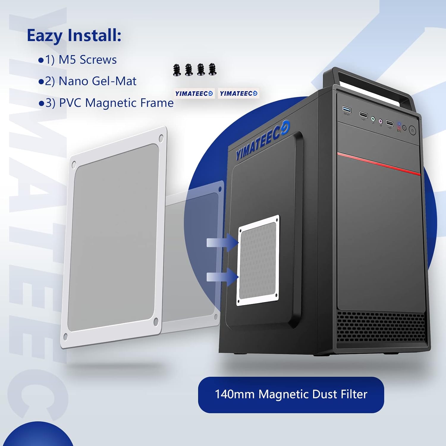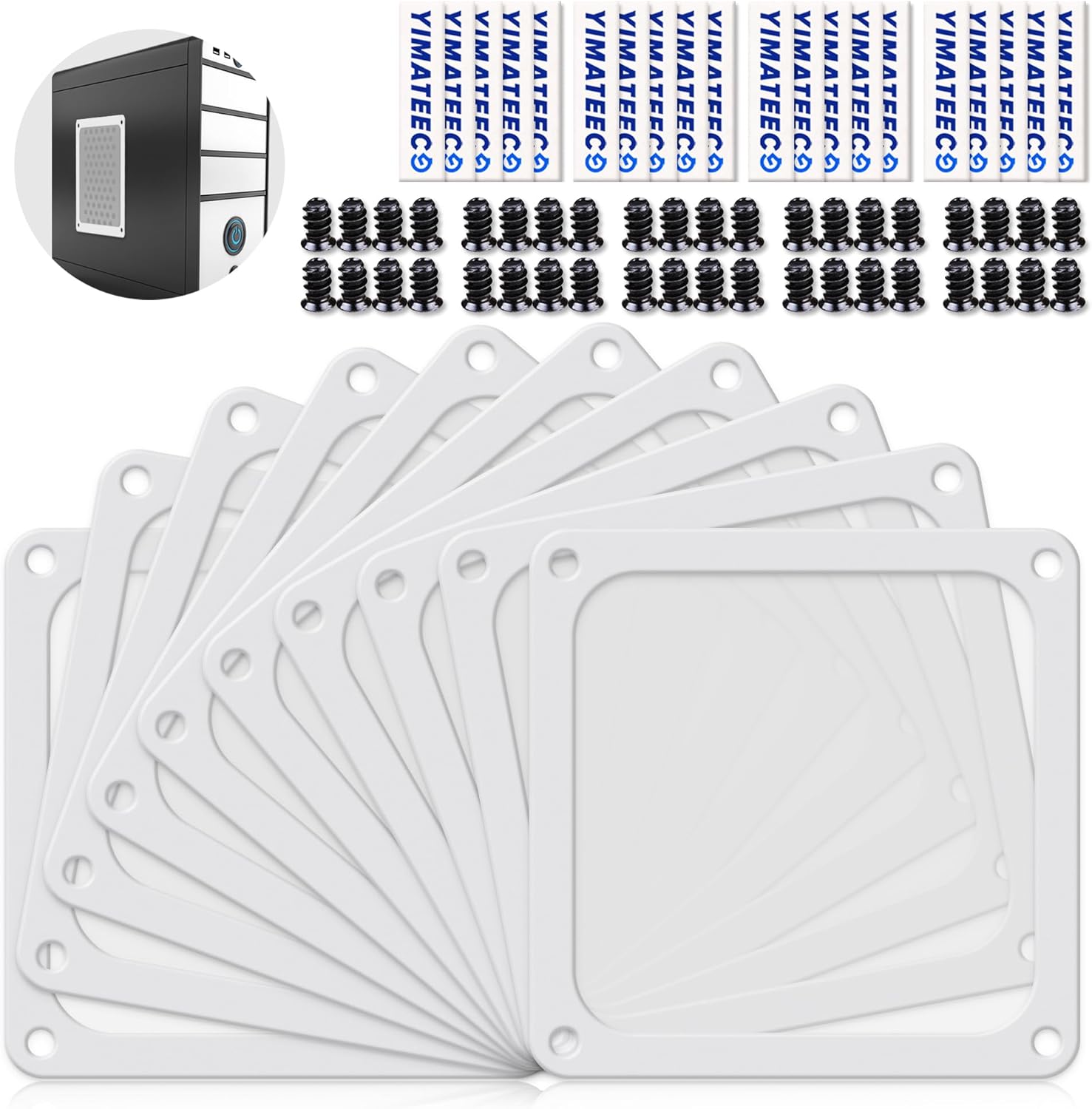- 【DELIVERY LIST】YIMATEECO Provides: 10 x 140*140mm PC Dust Filter White (NYLON & PVC) + 20 x 40*10mm Nano Gel-Mat(Acrylic) + 40 x 5*10mm M5 Fans Screws(Q235 STEEL).