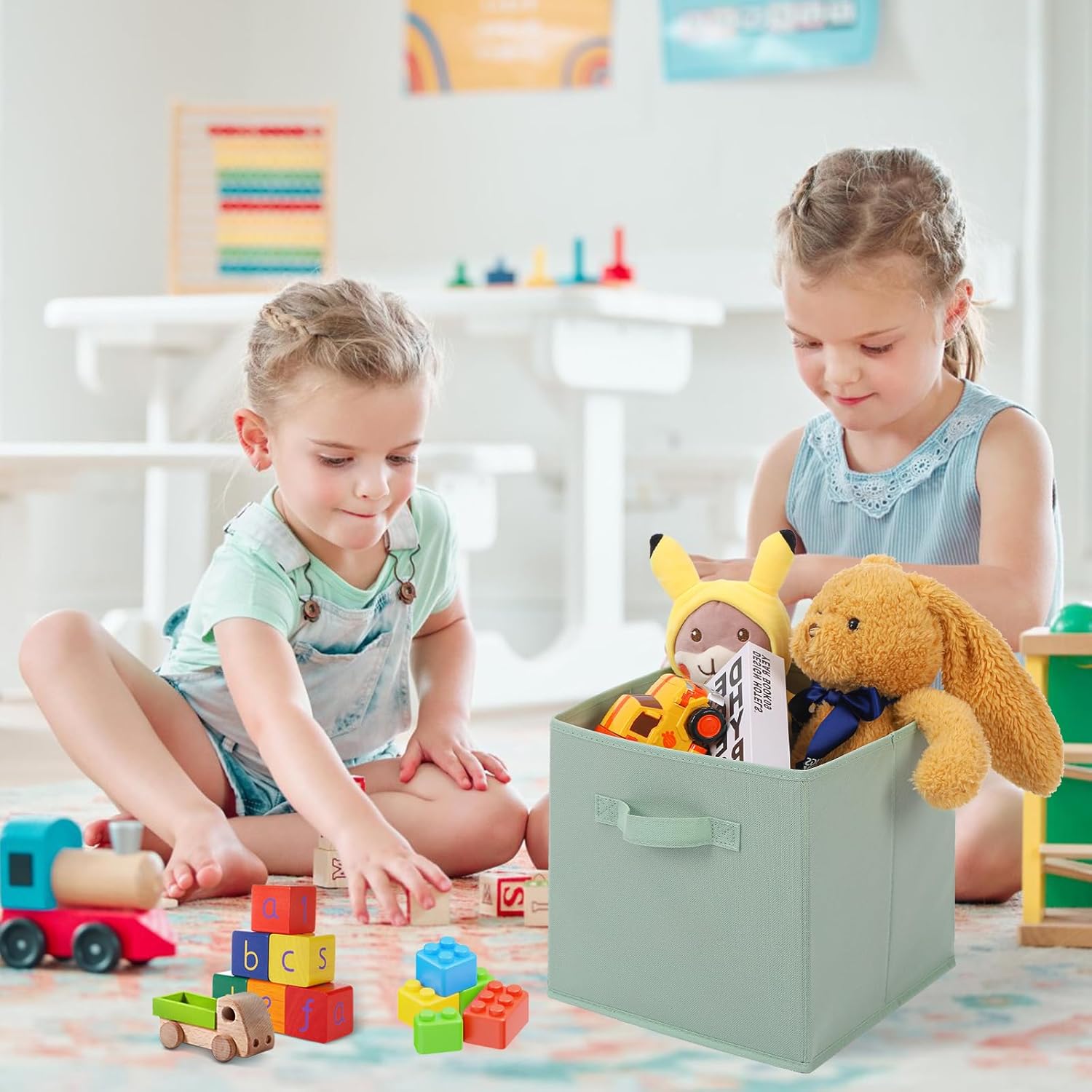 Stero 13x13x13 Inch Fabric Storage Bins 6 Pack Fun Colored Storage Cubes with Handles Foldable Cube Baskets for Home, Kids, Closet and Toys Organizer, Cyan, Green, Yellow