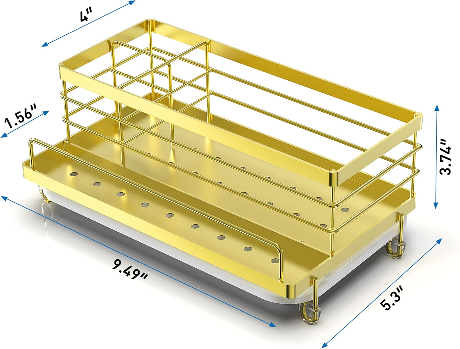 Cisily Kitchen Sink Caddy, Gold, Unisex, 5.3 in Wide, 9.49 in Long, 4 Storage Spaces, Stain-Resistant Tray, Anti-Rust, Easy to Clean