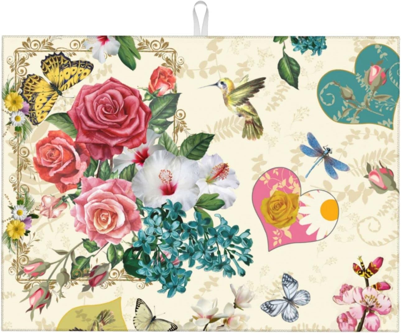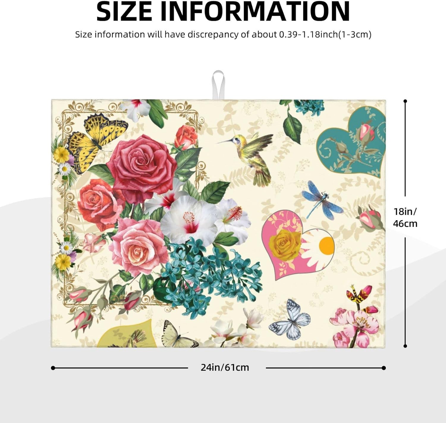 Dish Drying Mat For Kitchen Counter Absorbent Dish Mat Reversible Drainer Drying Kitchen Mat (Beautiful Boho Flowers, 24X18)
