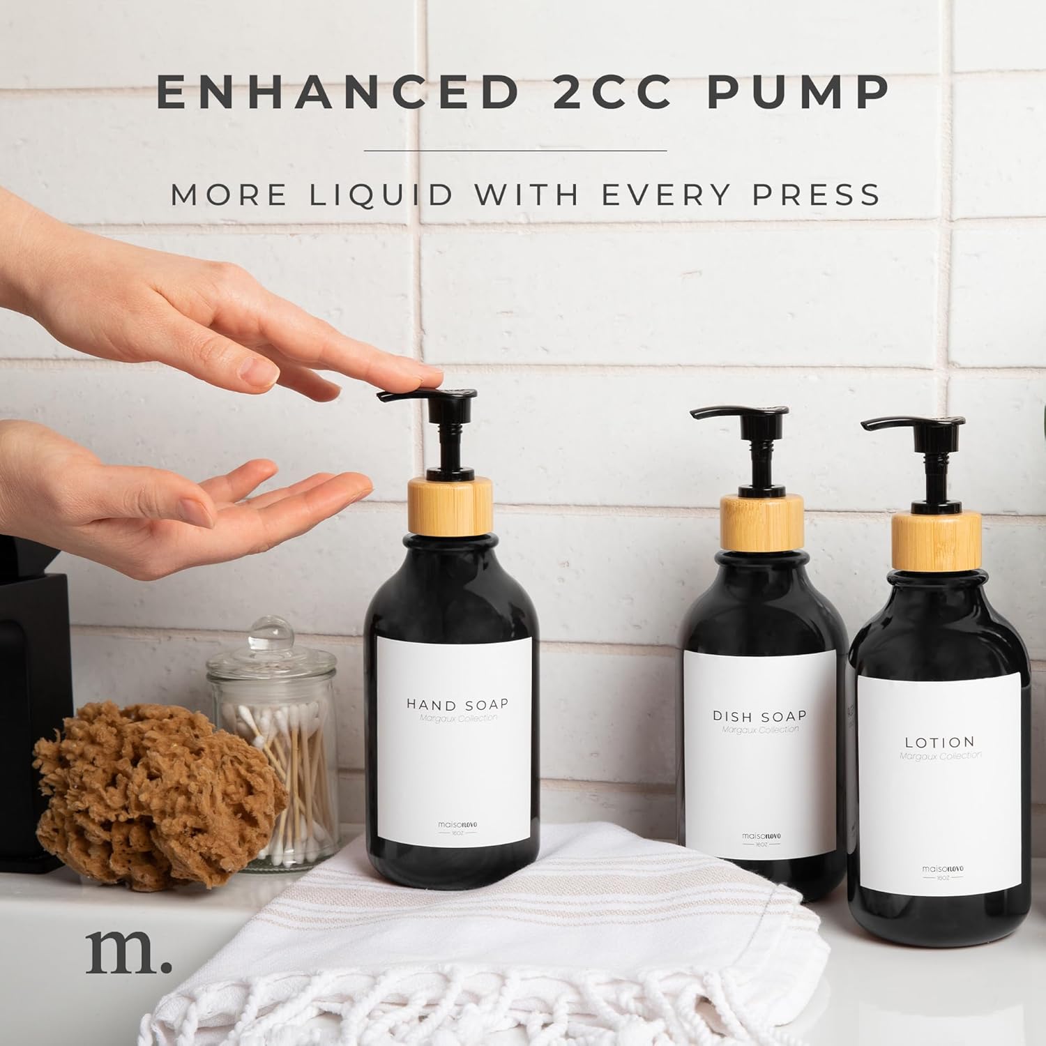 - Waste Reduction: Minimize waste with our lotion dispenser with pump bathroom containers. These sleek empty shampoo bottles reduce environmental impact while adding elegance to your space. A soap and lotion dispenser bathroom set that doesnβt compromise style!