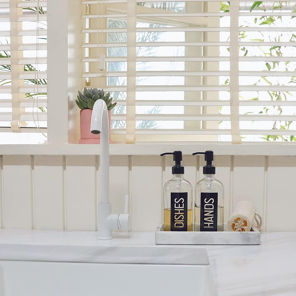 JASAI 2Pack 18OZ Glass Soap Dispenser, Black Stainless Steel Pump, Kitchen Dispenser with Classy Label, Refillable for Dishes
