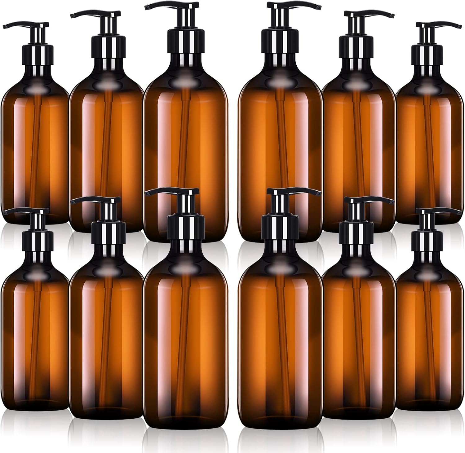 Tessco for you 12 Pack Amber Soap Dispenser Empty Plastic Pump Bottles Dispenser Refillable Shampoo for Hand Sanitizer Soap Cosmetic Lotion Body Wash Conditioner Bathroom Kitchen Travel (16.9 Oz)