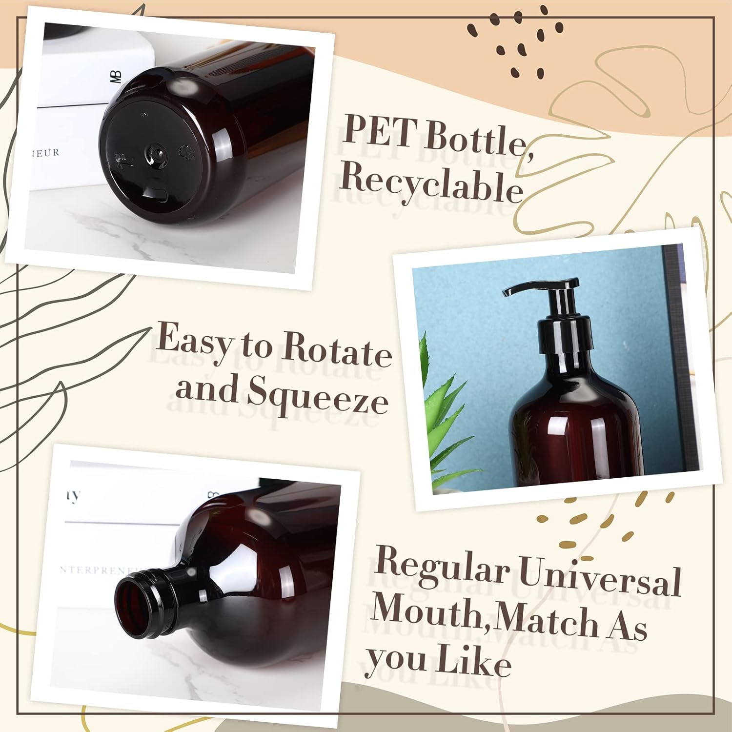 - Value Set: the package includes 12 pieces of the plastic pump bottles in amber color, sufficient quantity can satisfy your daily use, replacing and sharing needs, and the elegant color and design can blend with many styles of home decorations, such as farmhouse style, modern style, boho style and so on
