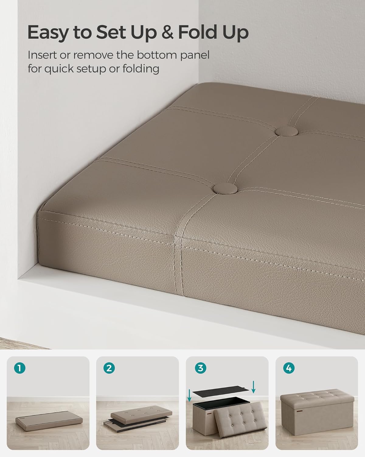 - ăQUICK ASSEMBLY, EASY FOLDAWAYăThis storage ottoman from the SONGMICS MAZIE Collection has a foldable design that allows quick setup in seconds by simply inserting the bottom panel. Easily fold and store it under the bed or in a closet when not in use