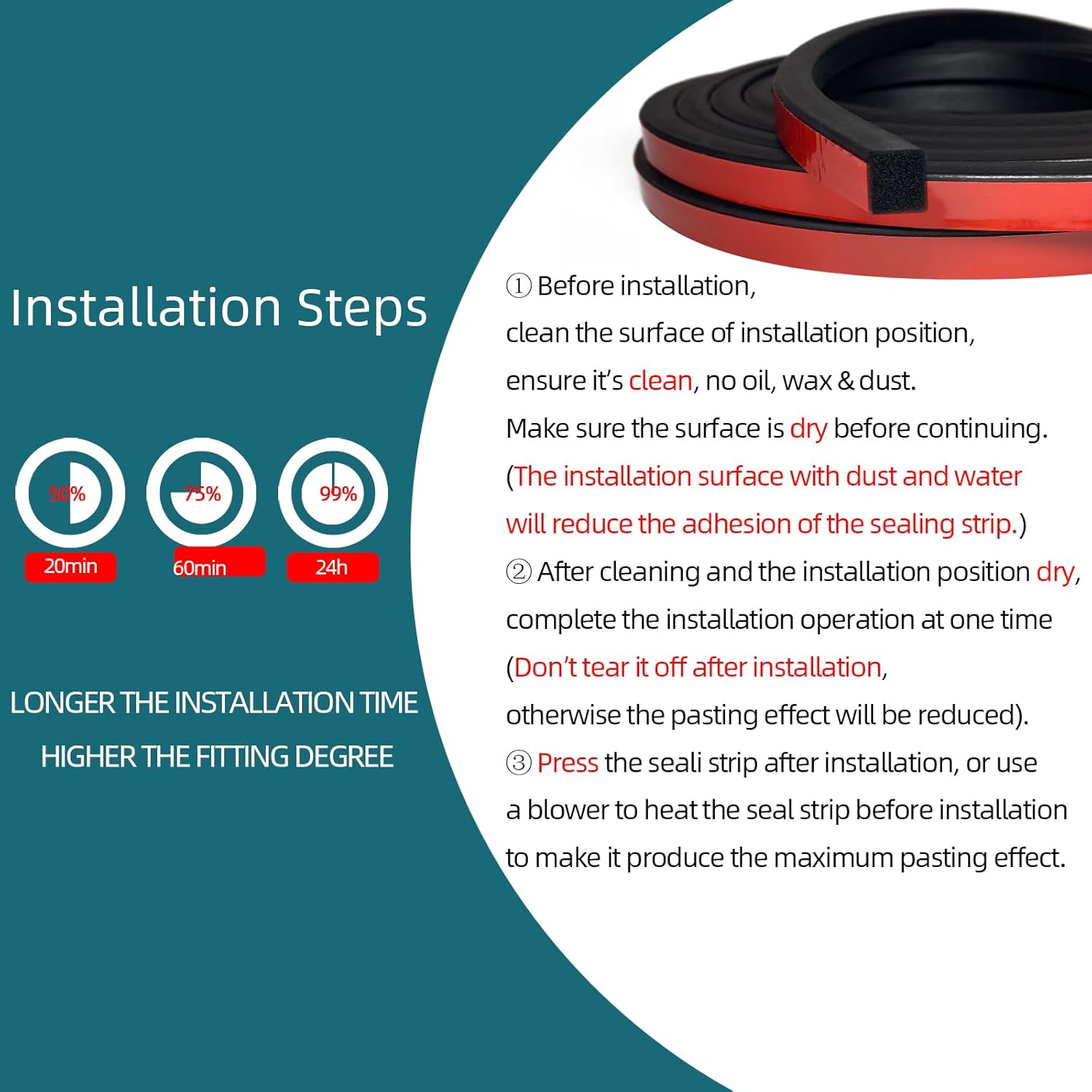 - 【RUBBER SEAL WITH HIGH TACK】The back comes with adhesive tape, which can be used immediately after tearing. What you need do, just to clean the place for installation, measure and cut the length, the adhesive is very sticky and long-lasting so you can rest assured.