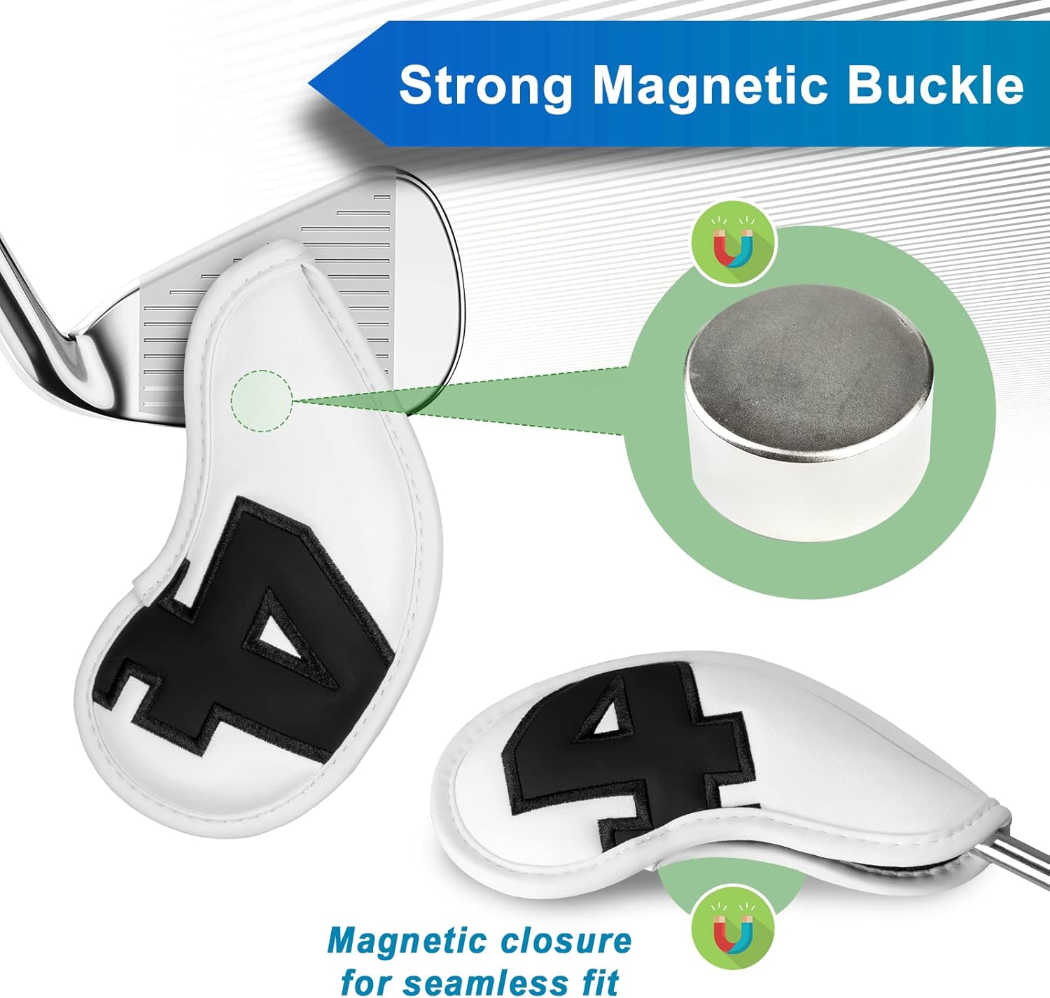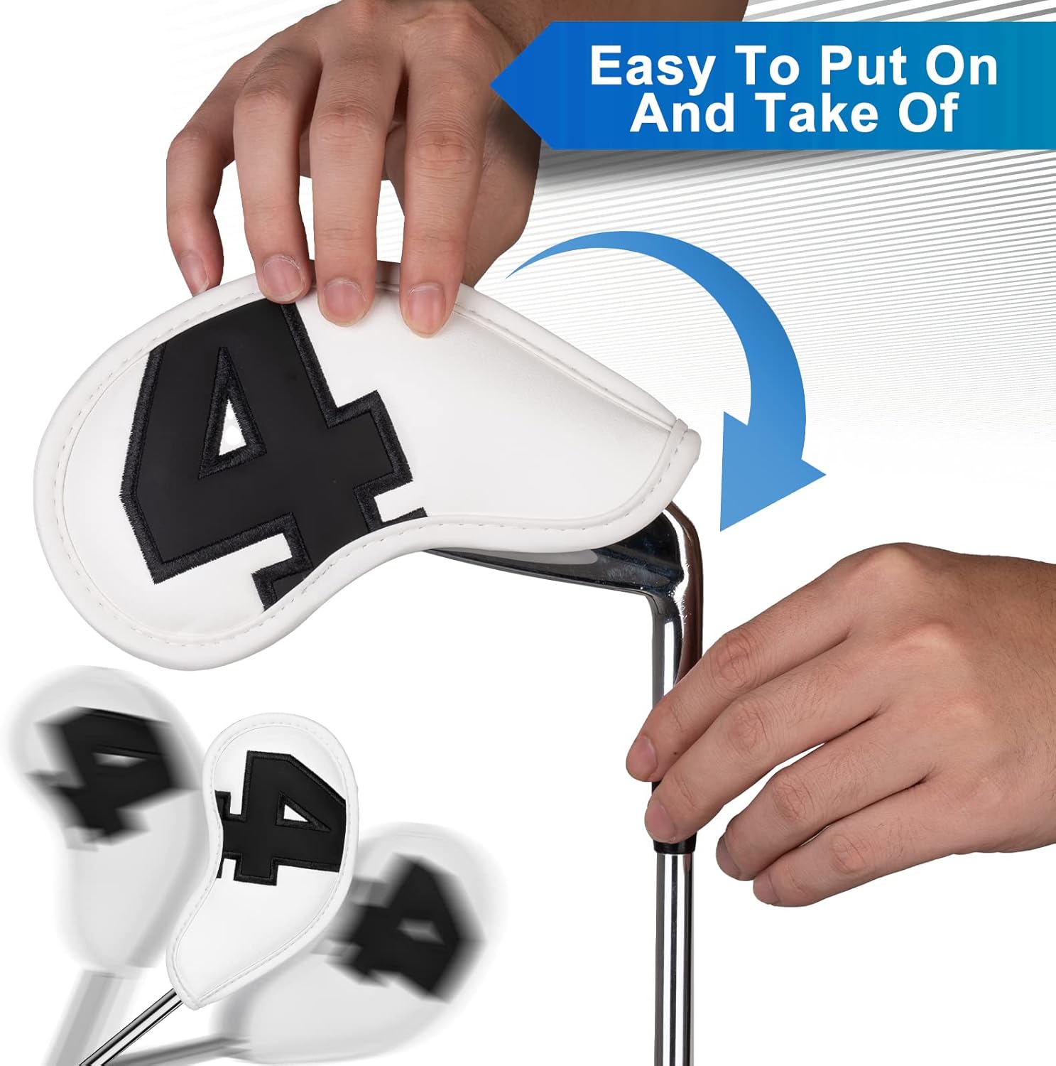 - Package Included : 1 set 10pcs ( 4,5,6,7,8,9,P,A,S,X ) white iron headcovers with large No.