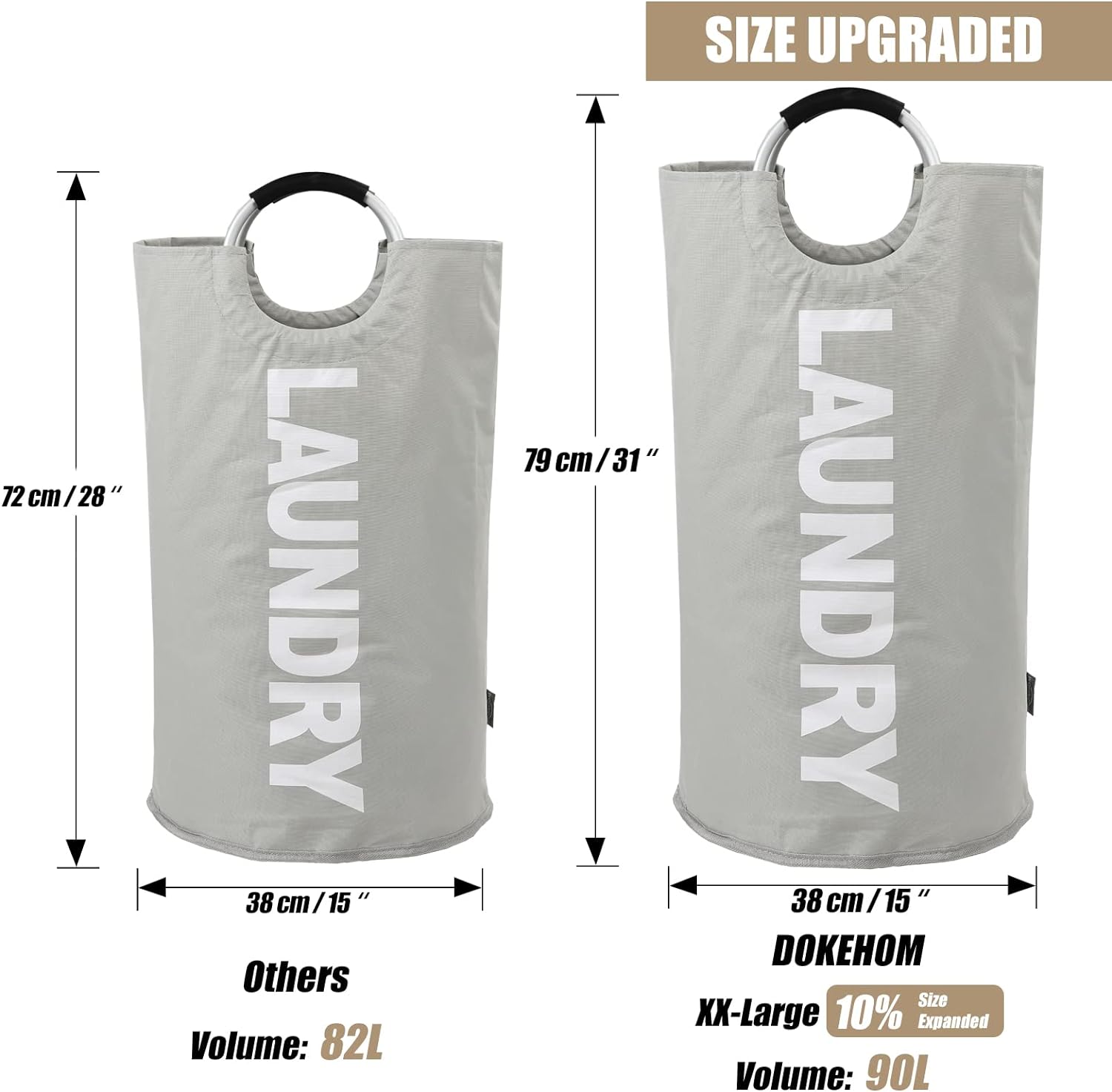 DOKEHOM 90L Large Laundry Basket, Collapsible Laundry Bag, Freestanding Tall Clothes Hamper, Foldable Washing Bin (Grey)