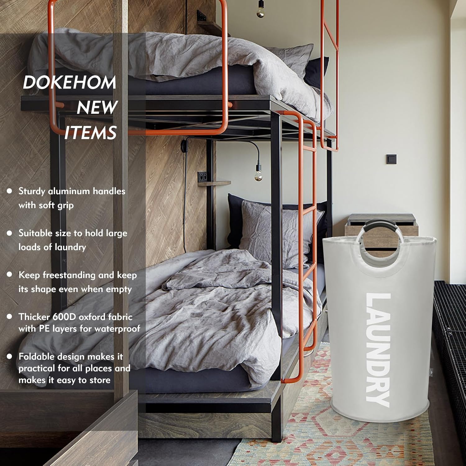 - SOFT HANDLE - Made from aluminum with soft EVA grip, sturdy and comfortable to carry a full load hamper.