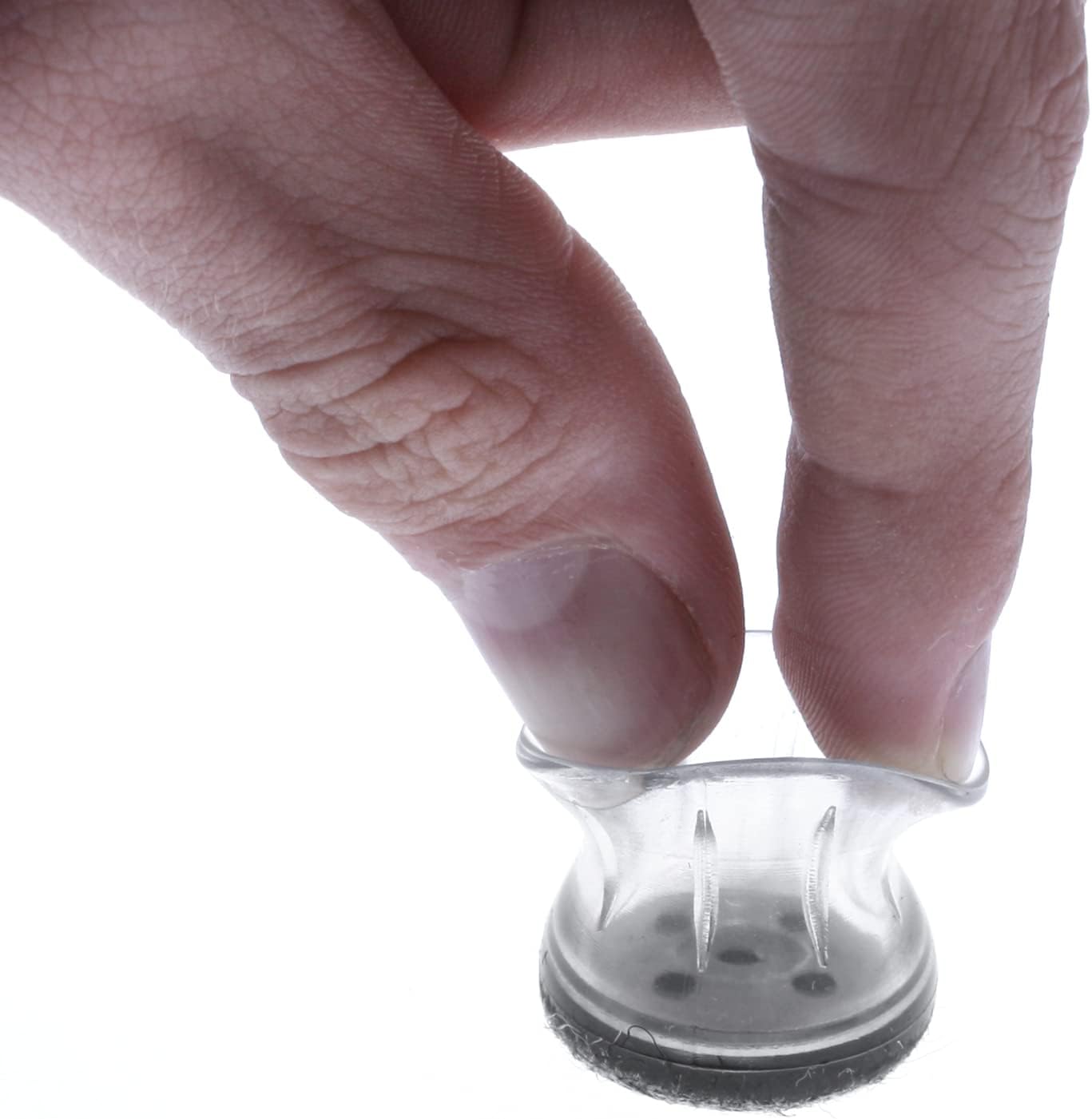 - Fits round & square furniture legs – These stretch to fit chair pads securely fit round legs 5/8” to 7/8” in diameter (16 – 22mm) and square legs 5/8” to 13/16” in diameter (15 – 21mm). The tube that holds the furniture leg is made of an advanced polymer material that is strong, tear resistant, long lasting, and clear for low visibility.