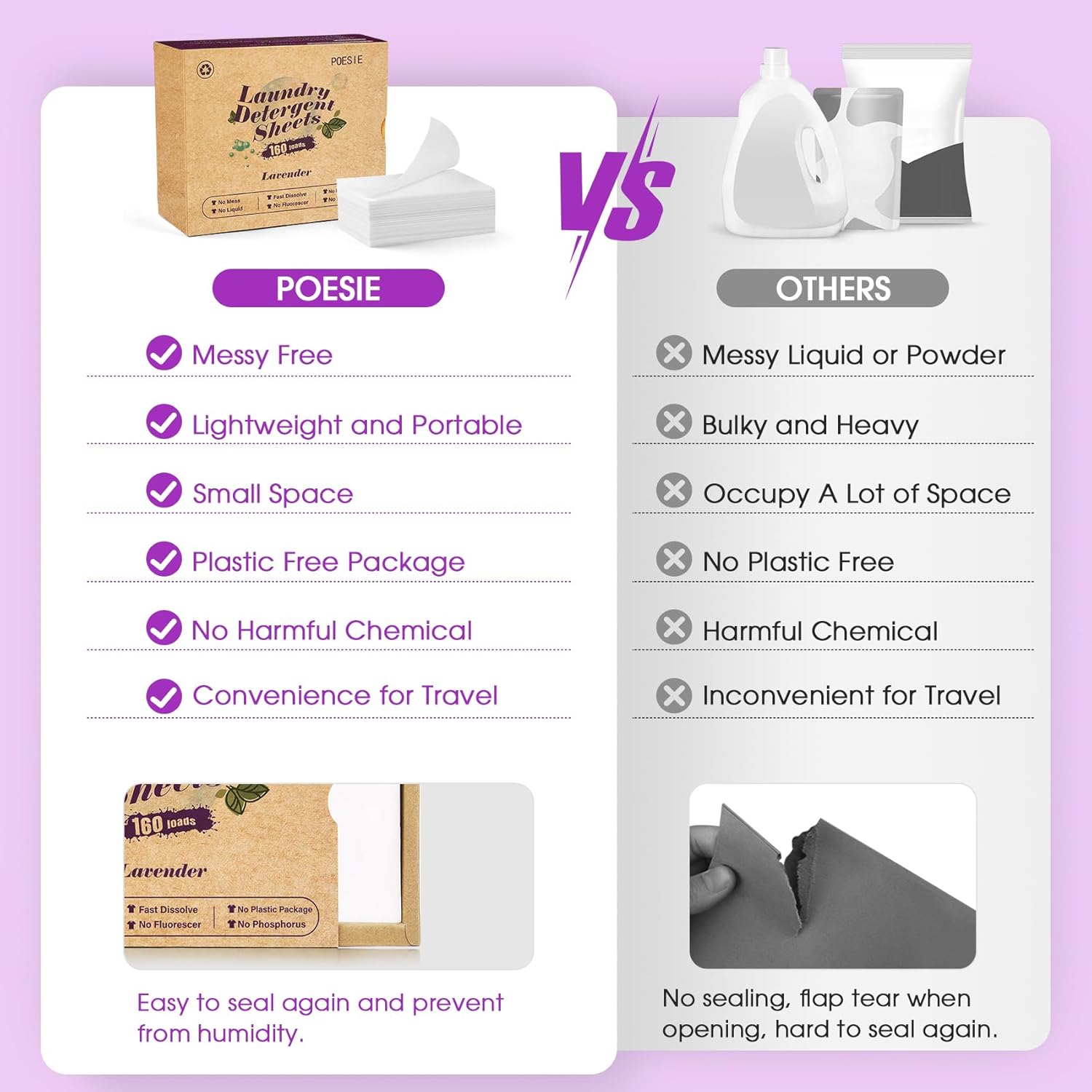 Poesie Laundry Detergent Sheets Lavender Scent 3 Pack 480 Sheets 240 Loads Laundry Strips No Plastic Jug Liquidless Travel Portable Laundry Detergent HE for Camping Dorm Life