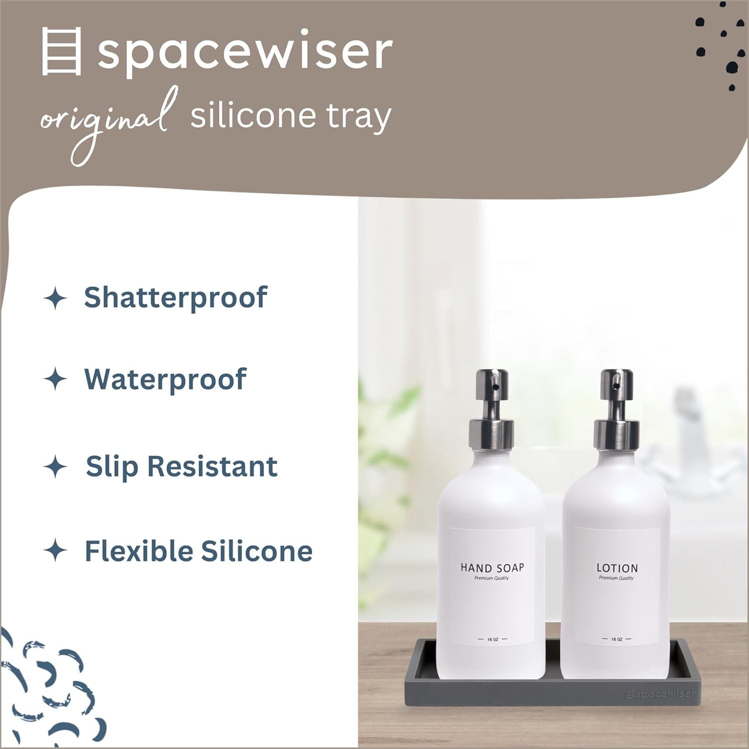 - The Details - 2 Small Trays in Modern Gray - 7.7” x 4”. Spacewiser silicone trays are made of flexible but sturdy food grade silicone. They're the perfect vanity tray, bathroom sink organizer, kitchen sink organizer, or sponge holder for kitchen sink areas.