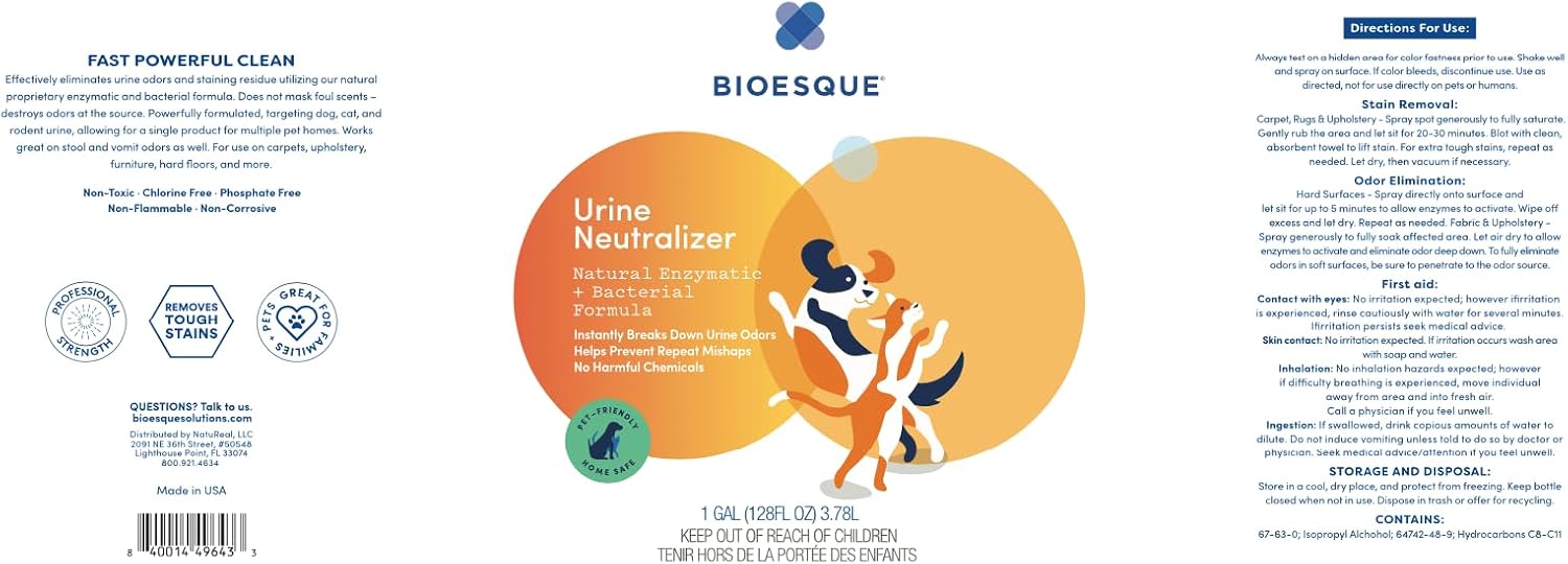 Bioesque Urine Neutralizer, Pet-Friendly Natural Enzymatic & Bacterial Formula, Instantly Breaks Down Urine Odors, Helps Prevent Repeat Mishaps, 1 Gallon (Pack of 1)