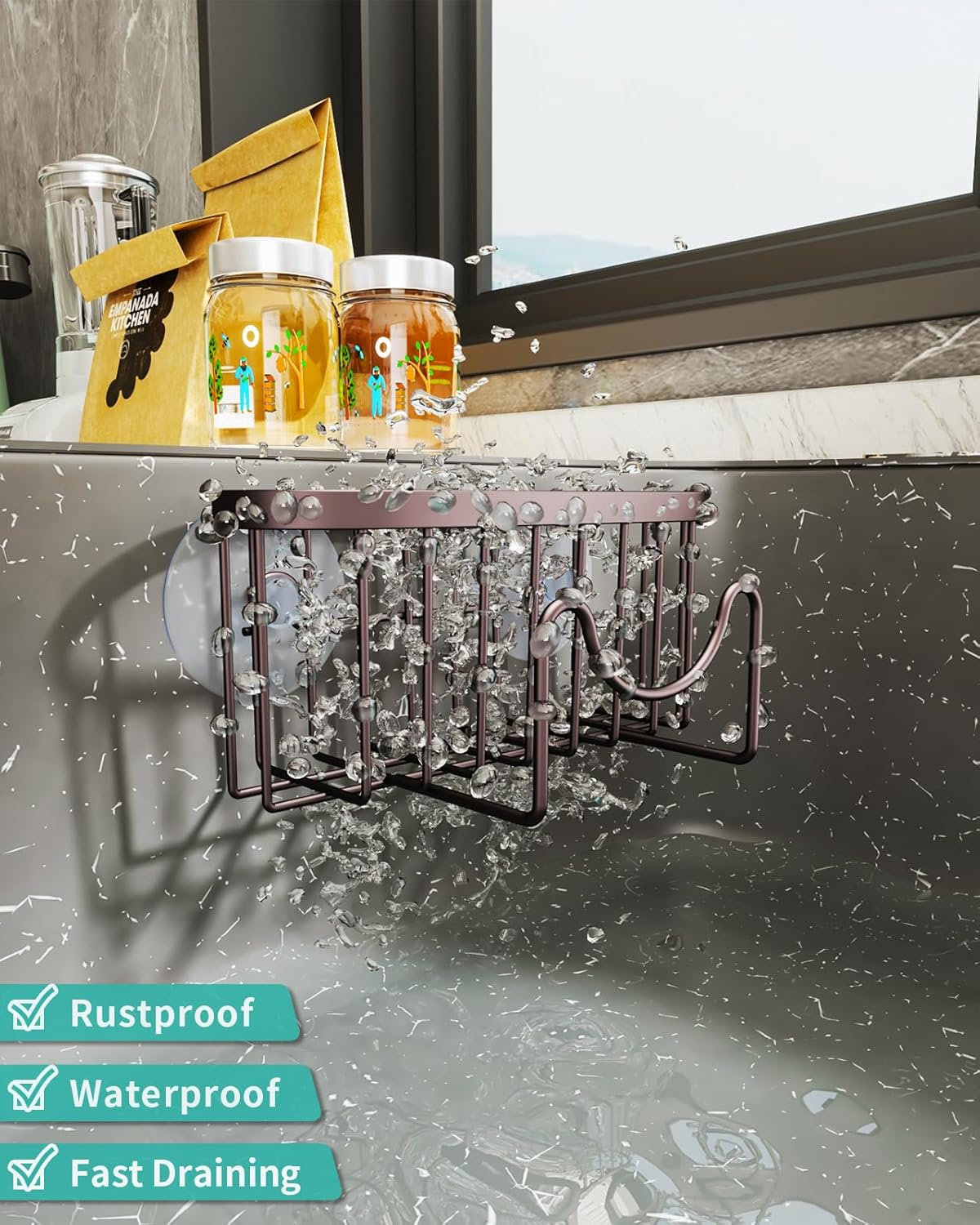 - [Durable Stainless Steel]: Constructed of 304 stainless steel with with a layer of anti rust coating, Hapirm sponge holder for kitchen sink can effectively prevent rust even in wet conditions and has a long service life