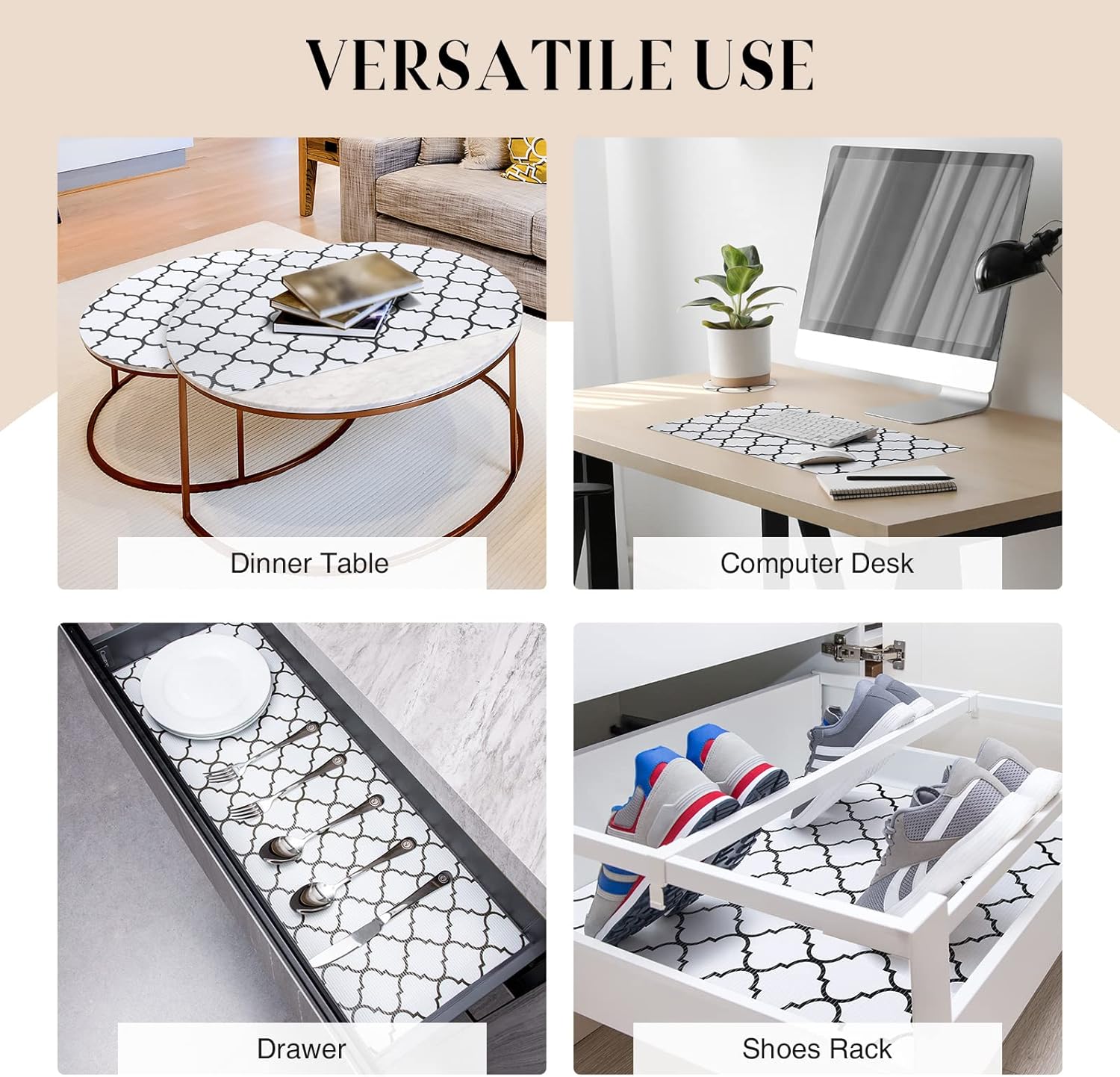 - π Easy Installation: With pre-cut sizes and a non-adhesive design, installation is a breeze. Simply place the pantry shelf liner in your drawer or cabinet and trim off any excess material with household scissors.