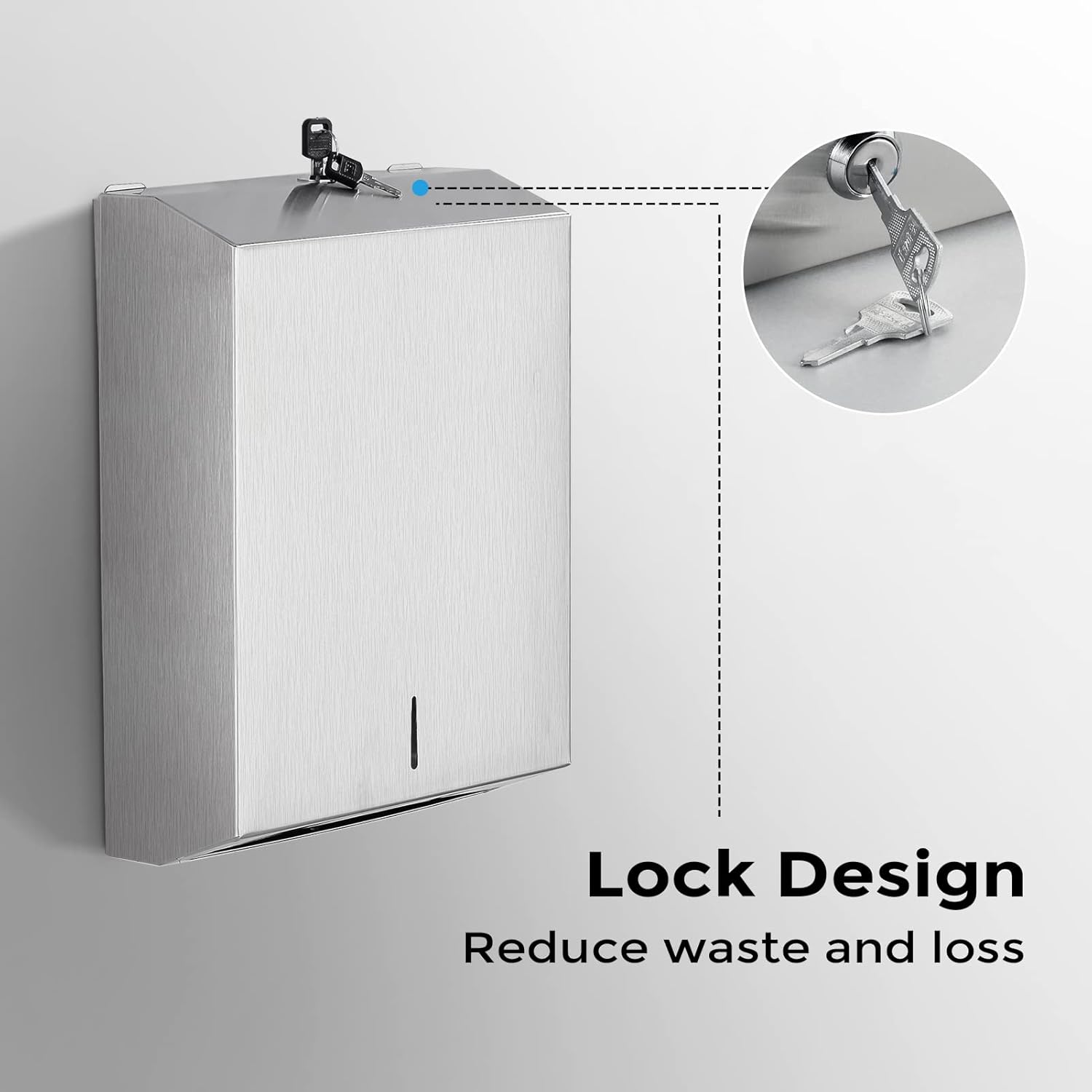 Paper Towel Dispenser Wall Mount - Multifold Trifold Paper Towel Dispensers, Large Capacity Stainless Steel Tissue Holder, Suitable for Bathrooms and Public Places