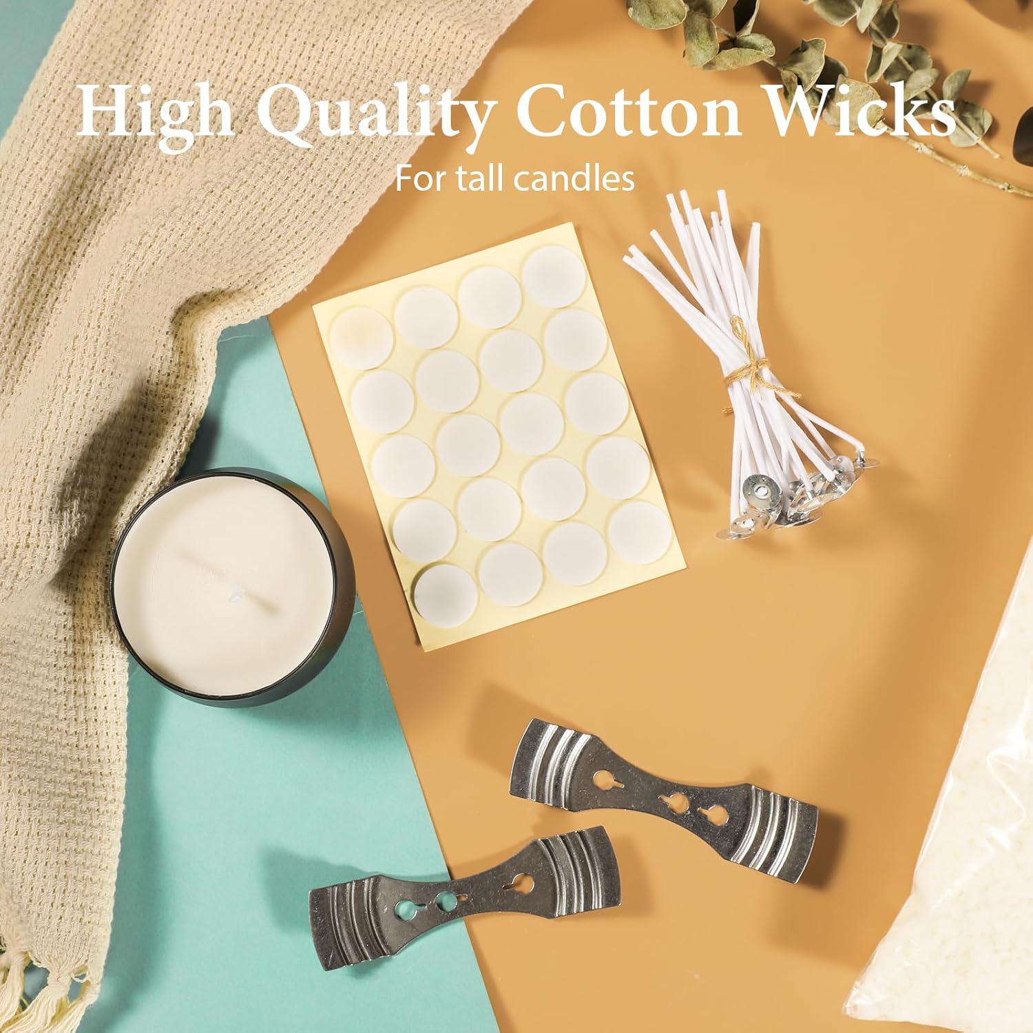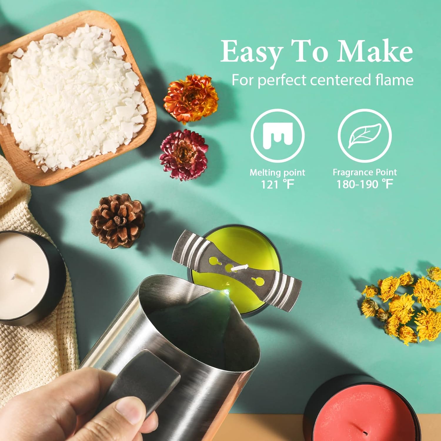 - 【CANDLE MAKING KIT】soy wax DIY kit includes all the essential materials to get you started crafting beautiful candles. 1x 5lb bag of natural soy wax (flake form) and 20x pre-cut candle wicks, 20 wick stickers and 2x centering devices.