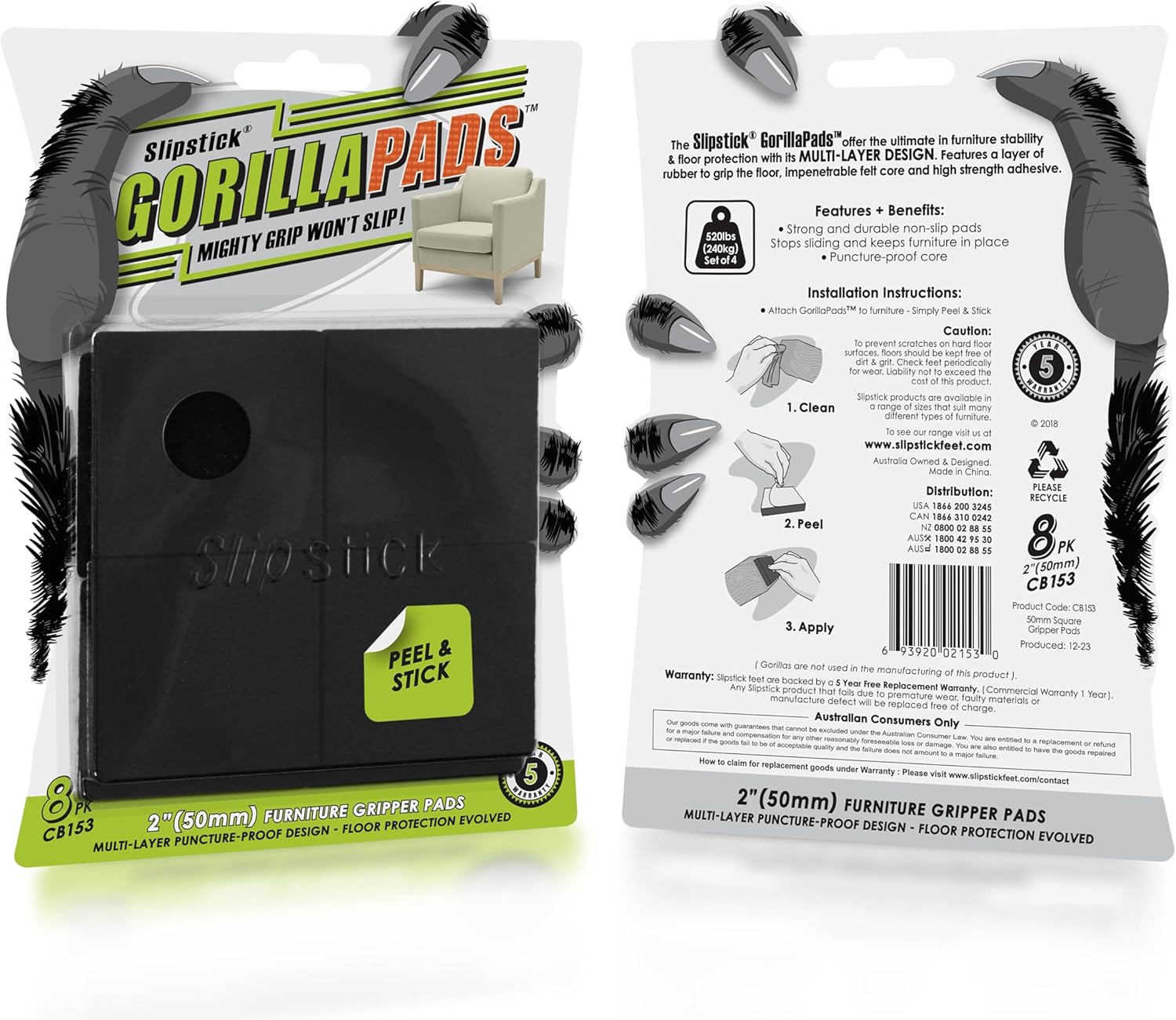 - Mighty grip that wont slip β Gorillapad furniture grippers by Slipstick are the universal solution to stop unwanted movement or sliding of furniture / objects and effectively protect hard surfaces from scratches or damage. Premium adhesive non slip furniture pads.