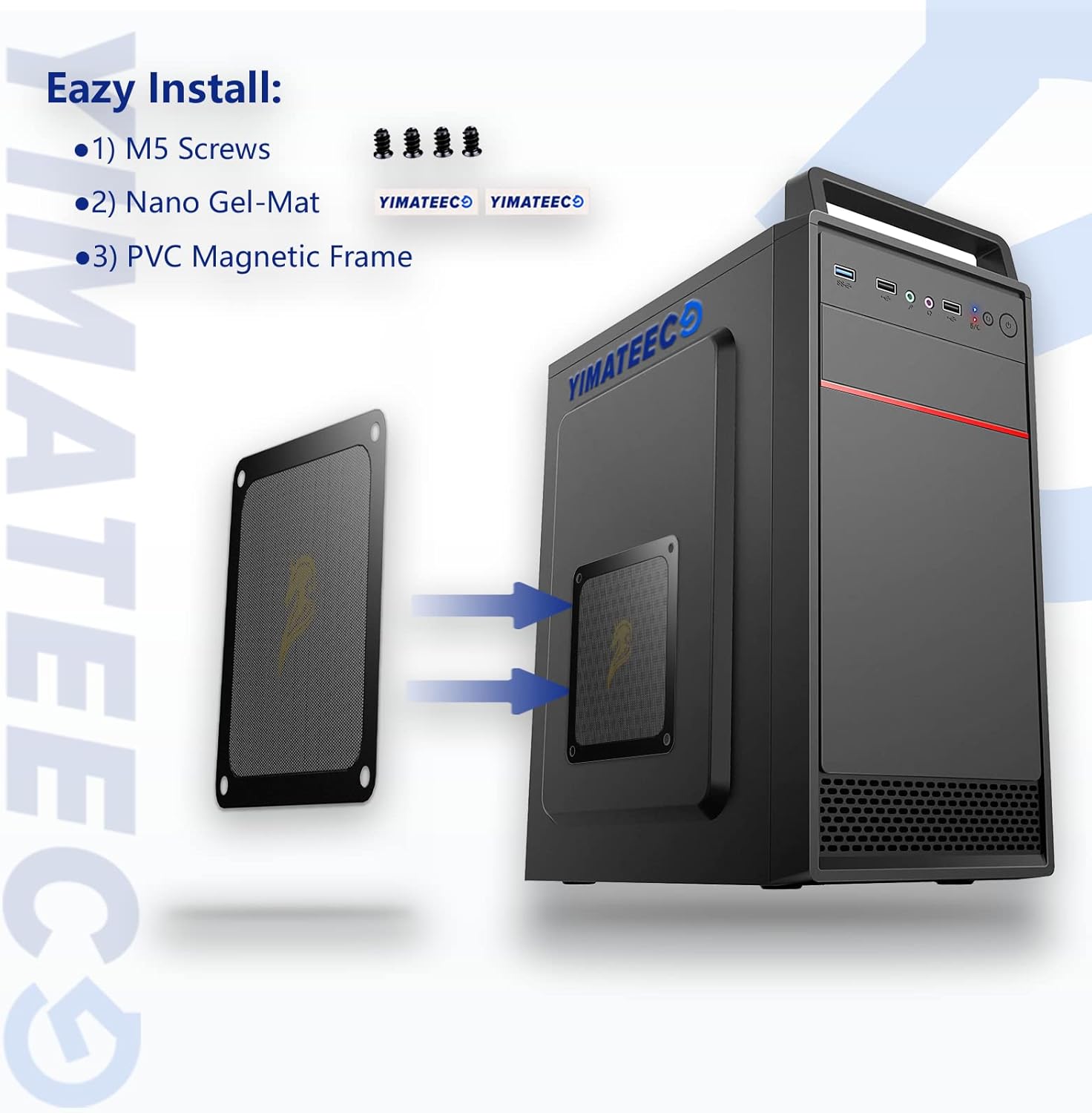 - 【DELIVERY LIST】YIMATEECO Provides: 2 x 140*140mm PC Dust Filter Gentleman Aesthetic (PVC) + 4 x 40*10mm Nano Gel-Mat(Acrylic) + 8 x 5*10mm M5 Fans Screws(Q235 STEEL).