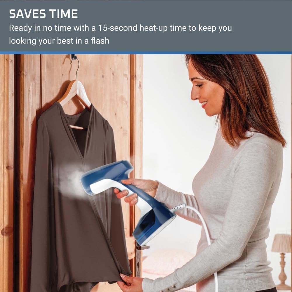 - EASY AND QUICK WRINKLE REMOVAL: A powerful and highly efficient handheld steamer with 1400W power and steam output up to 20 g/minute.