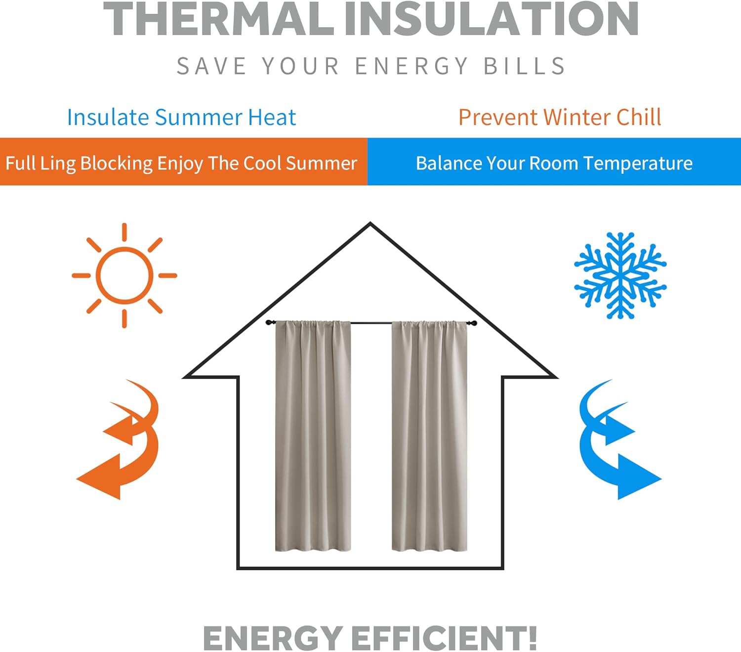 - ENERGY SMART - Curtains are work well on balance the temperature inside and outside by insulating summer heat and winter chill, so that these room darkening curtains can reduce the energy waste and save the daily bill effectively.