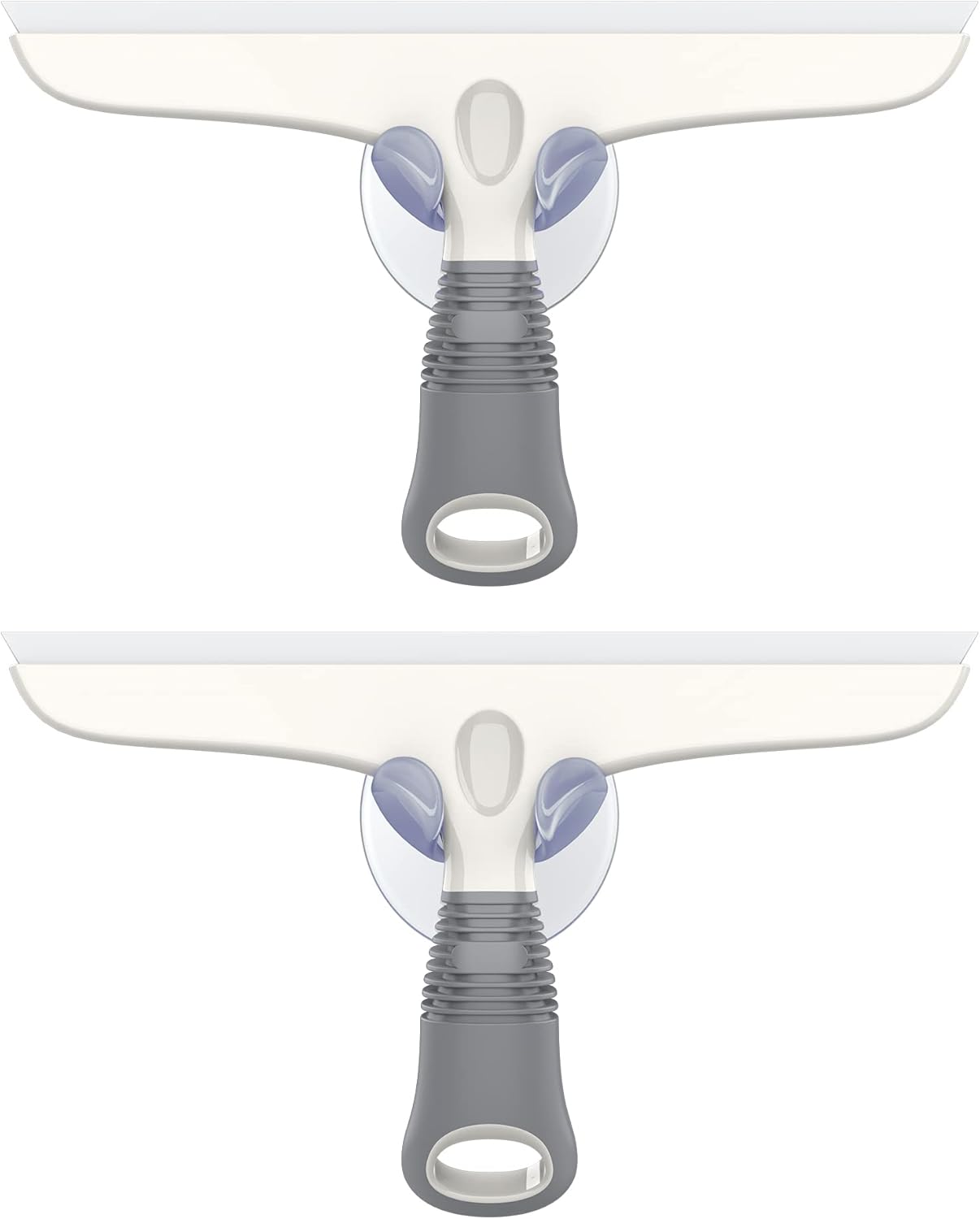 MR.SIGA Multi-Purpose Silicon Squeegee for Window, Glass, Shower Door, Car Windshield, Heavy Duty Window Scrubber, Includes Suction Hook, 10 inch, White & Gray, 2 Pack