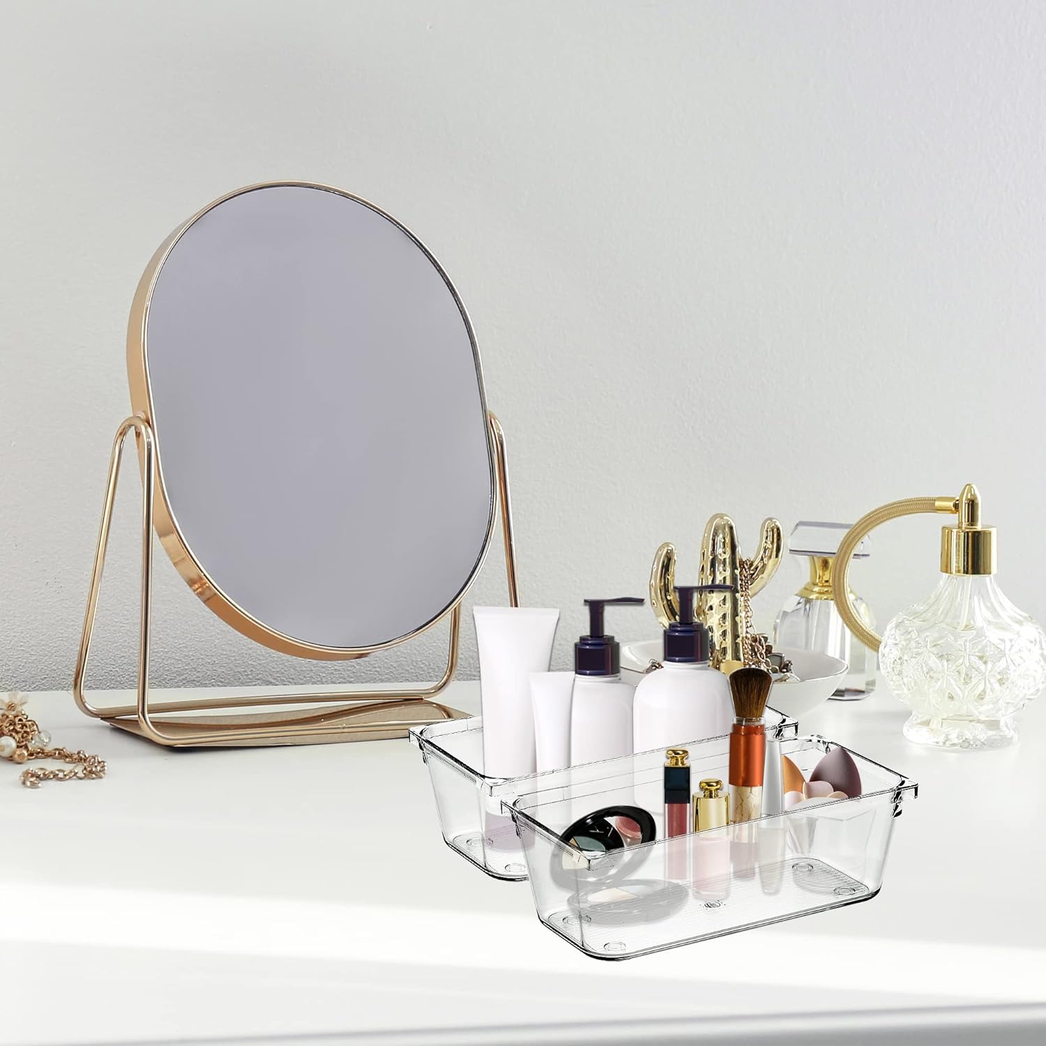 Ravinte 6 Pack Drawer Organizer - 3" X 6" Plastic Storage Bins, Acrylic Organizers with Non-Slip Pads Clear Desk Storage Tray for Makeup, Jewelries, Kitchen Utensils, Bathroom and Office