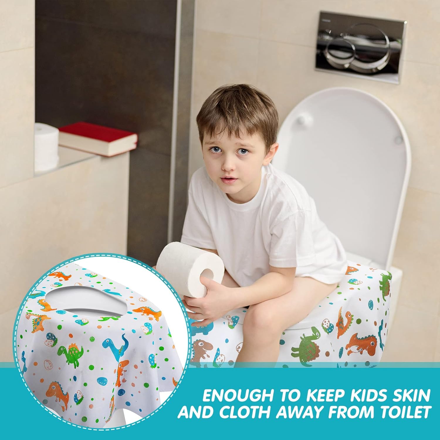 - What You Get: you will receive 50 dinosaurs themed disposable toilet seat covers; The quantity is sufficient, and the packaging is small, it will not take up too much space at home or on a trip, suitable for travel, going out, toilet training